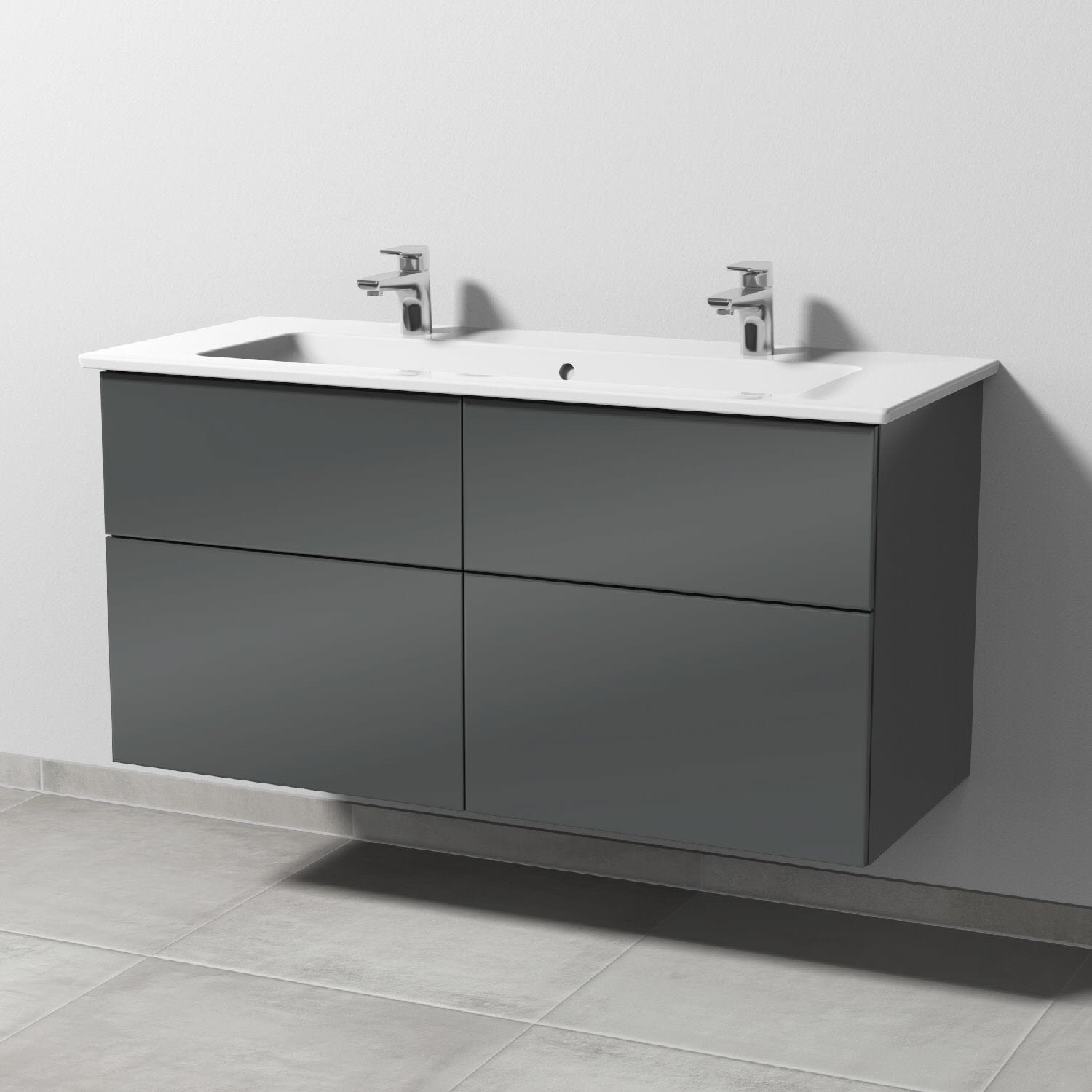 4 Auszüge mit Push to open, coolwhite, Doppelwaschtisch