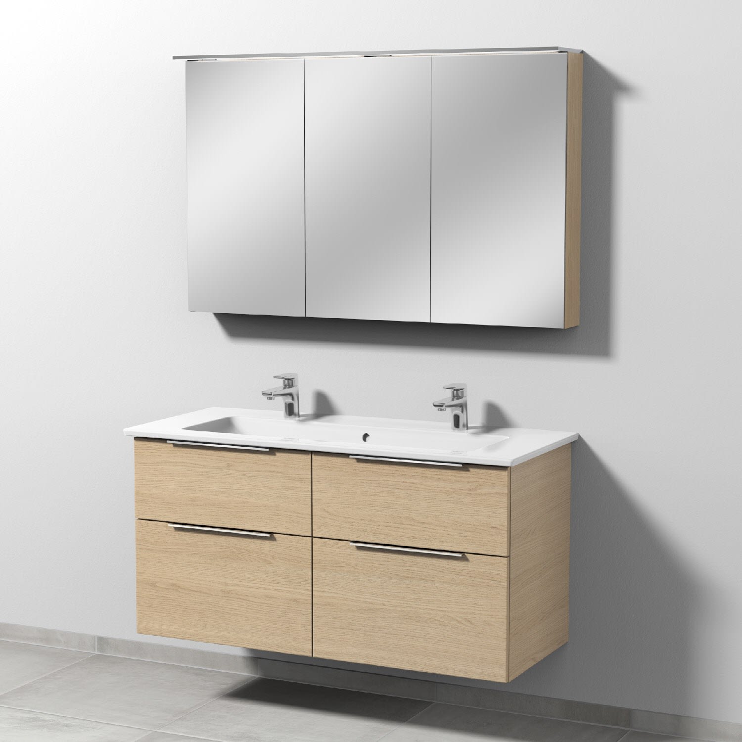 Sanipa 3way Möbelset-2 inkl. Spiegelschrank "MALTE", 120 cm, mit Aufsatzgriffen, Doppelwaschtisch