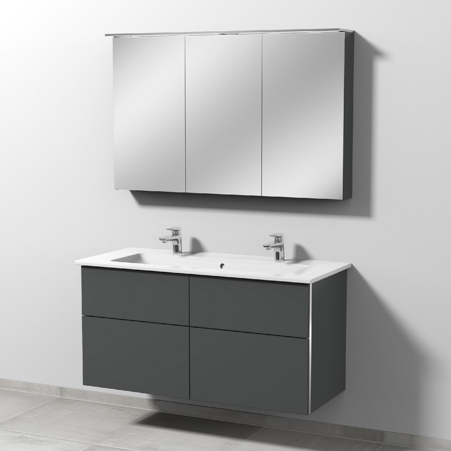 Sanipa 3way Möbelset-2 mit Griffleiste 08 inkl. Spiegelschrank "MALTE", 120 cm, Doppelwaschtisch