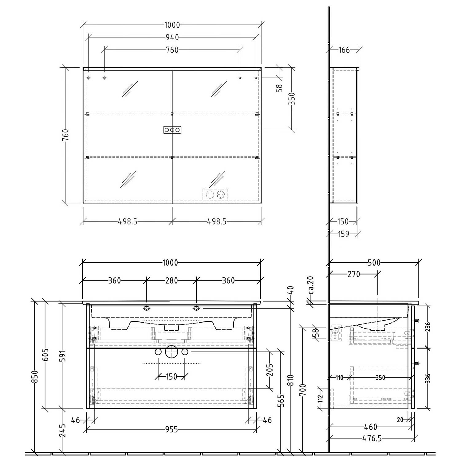 Sanipa 3way Möbelset inkl. Spiegelschrank "ARND", 100 cm