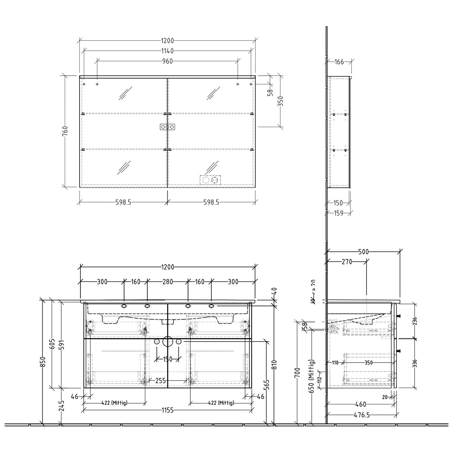 Sanipa 3way Möbelset inkl. Spiegelschrank "ARND", 120 cm