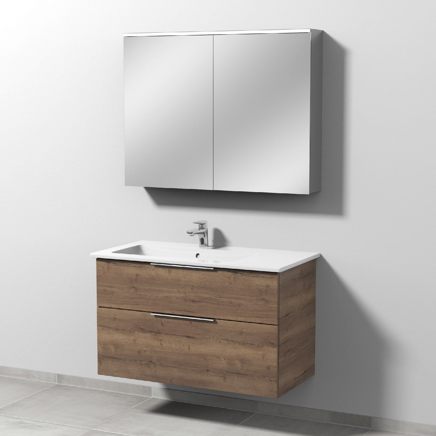 Sanipa 3way Möbelset inkl. Spiegelschrank "ARND", 100 cm, mit Aufsatzgriffen, Becken links