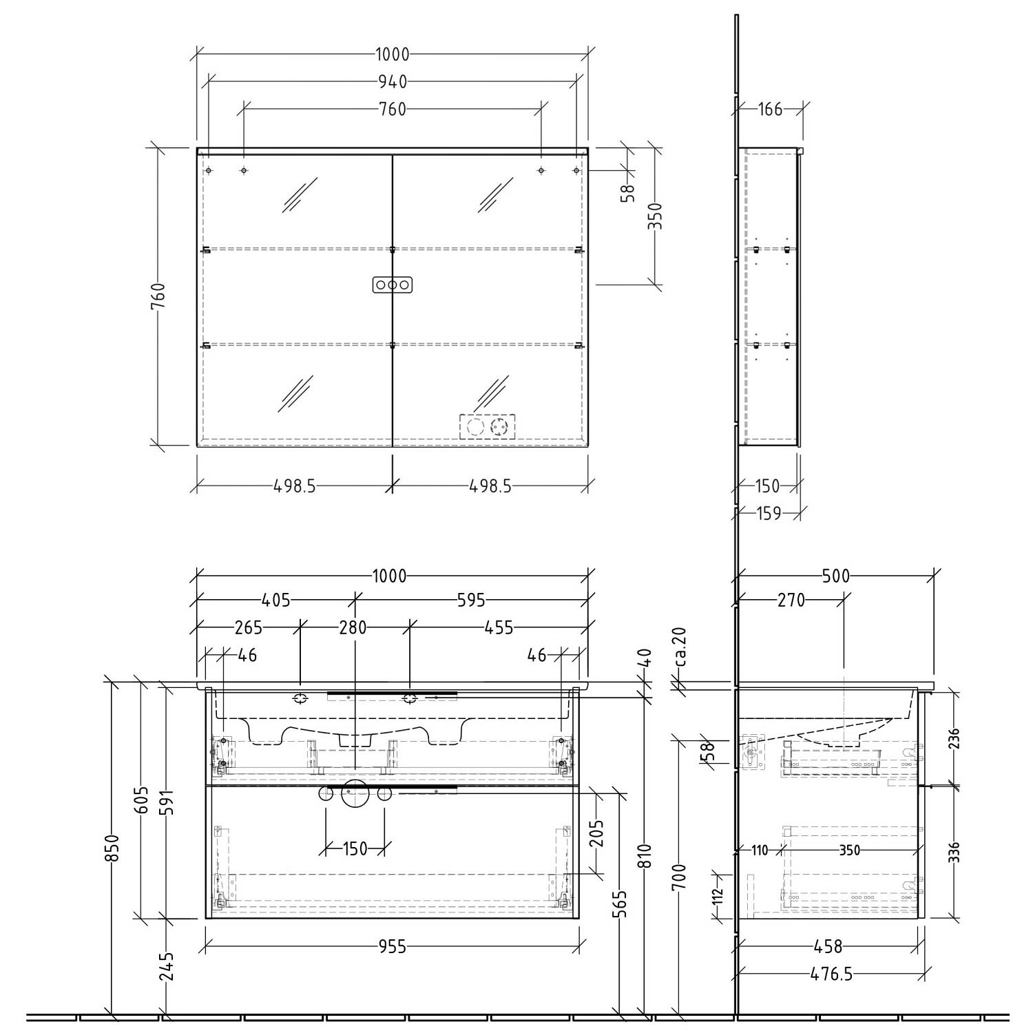 - Breite: 100 Tiefe inkl. Leuchte: 16,6 Höhe inkl. Leuchte: 76,5 cm