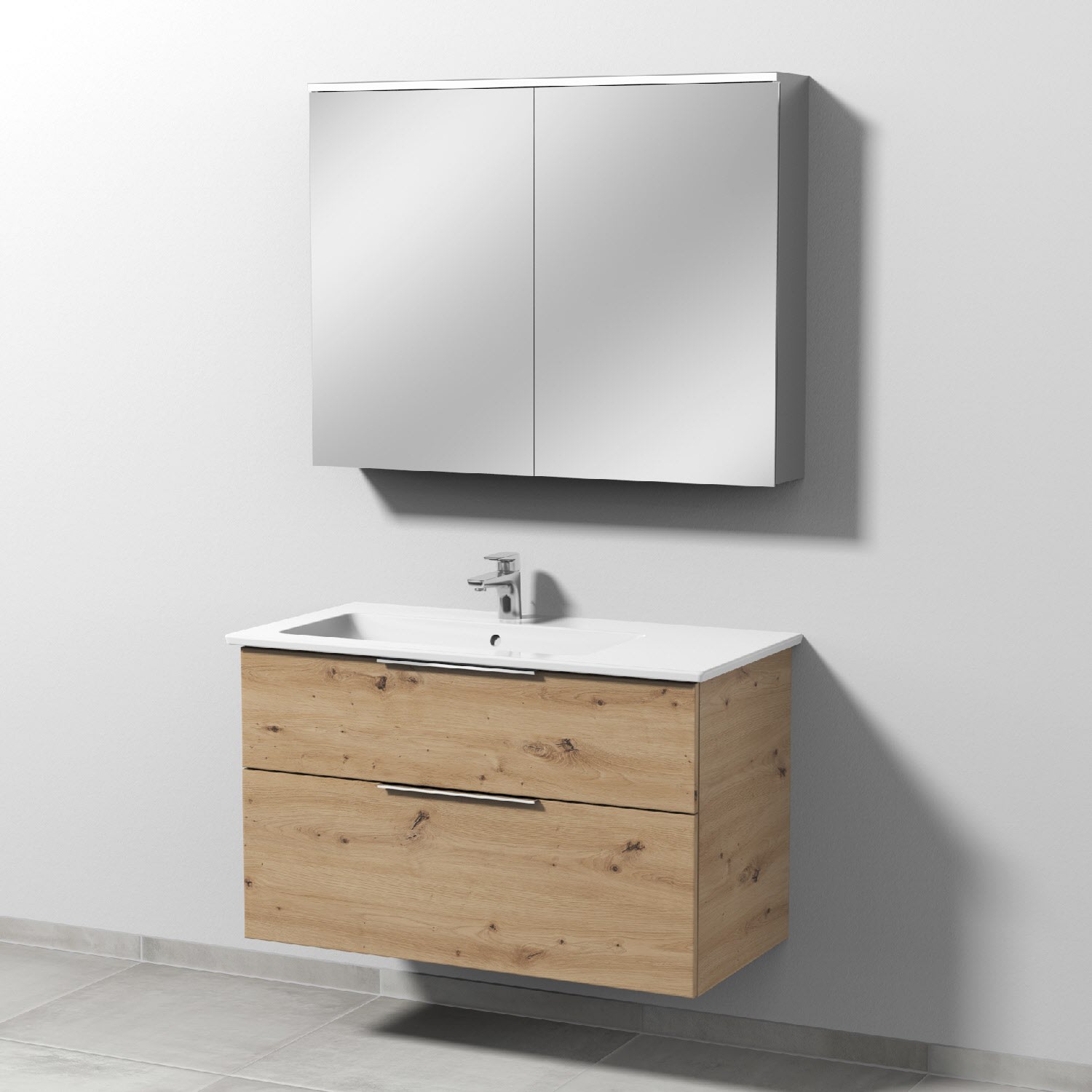 Sanipa 3way Möbelset inkl. Spiegelschrank "ARND", 100 cm, mit Aufsatzgriffen, Becken links