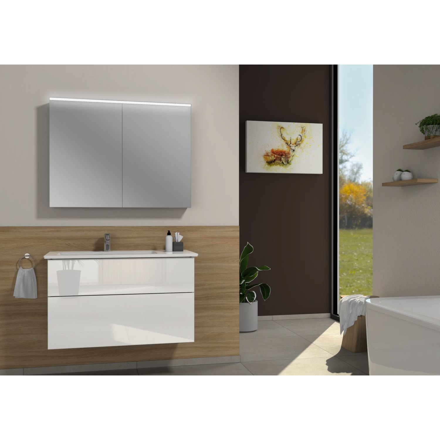 bestehend aus LED-Spiegelschrank und Waschtischunterschrank inkl. Keramik-Waschtisch von Villeroy & Boch