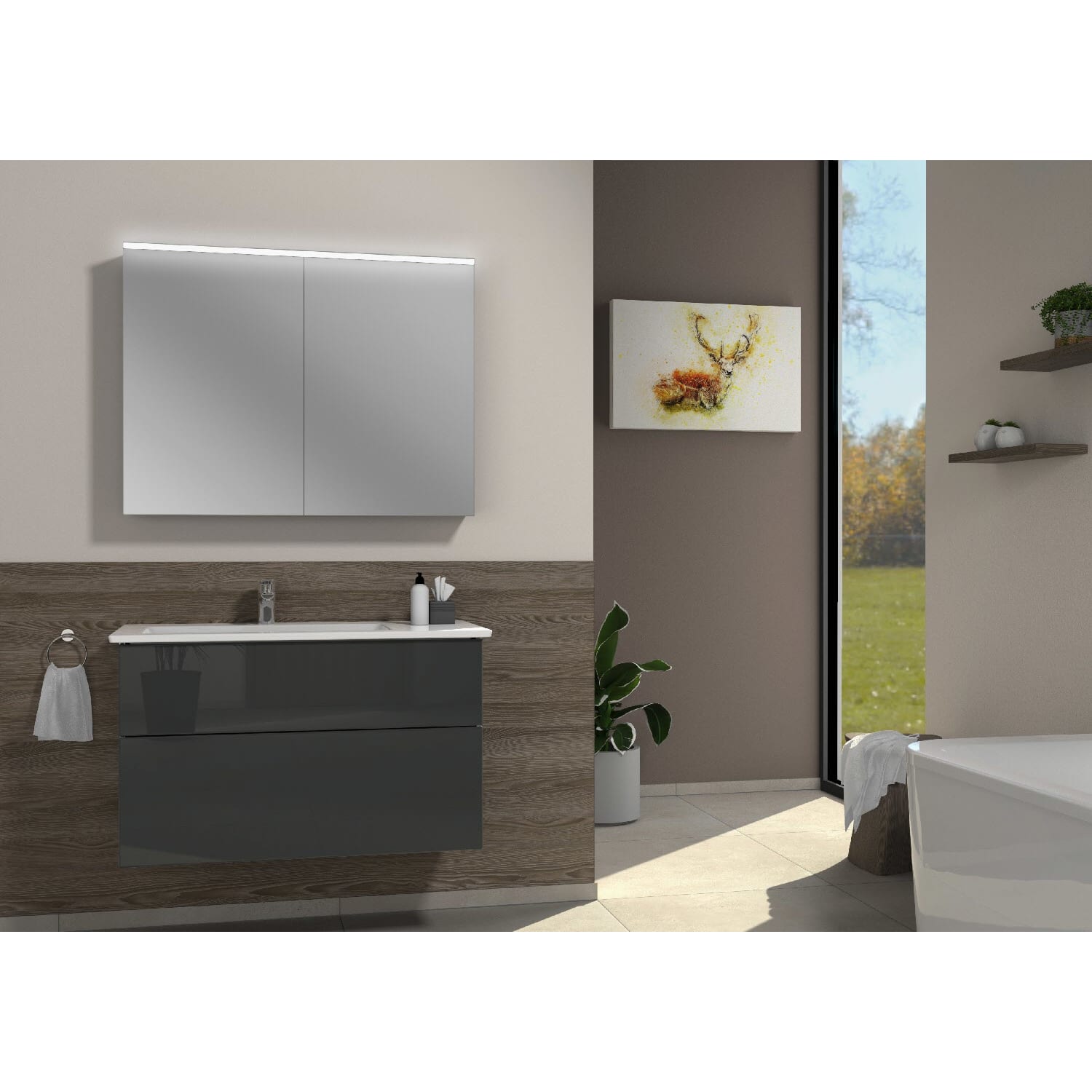 bestehend aus LED-Spiegelschrank und Waschtischunterschrank inkl. Keramik-Waschtisch von Villeroy & Boch