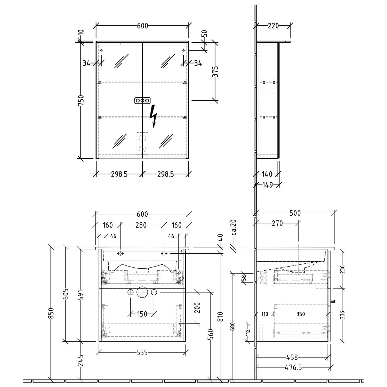 - Breite: 60 Tiefe inkl. Leuchte: 22 Höhe: 76 cm