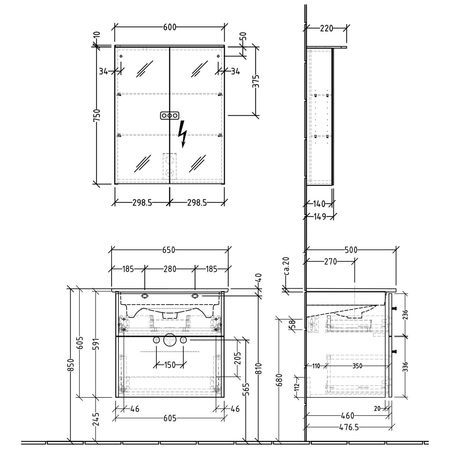 Sanipa 3way Möbelset inkl. Spiegelschrank "MALTE", 65 cm