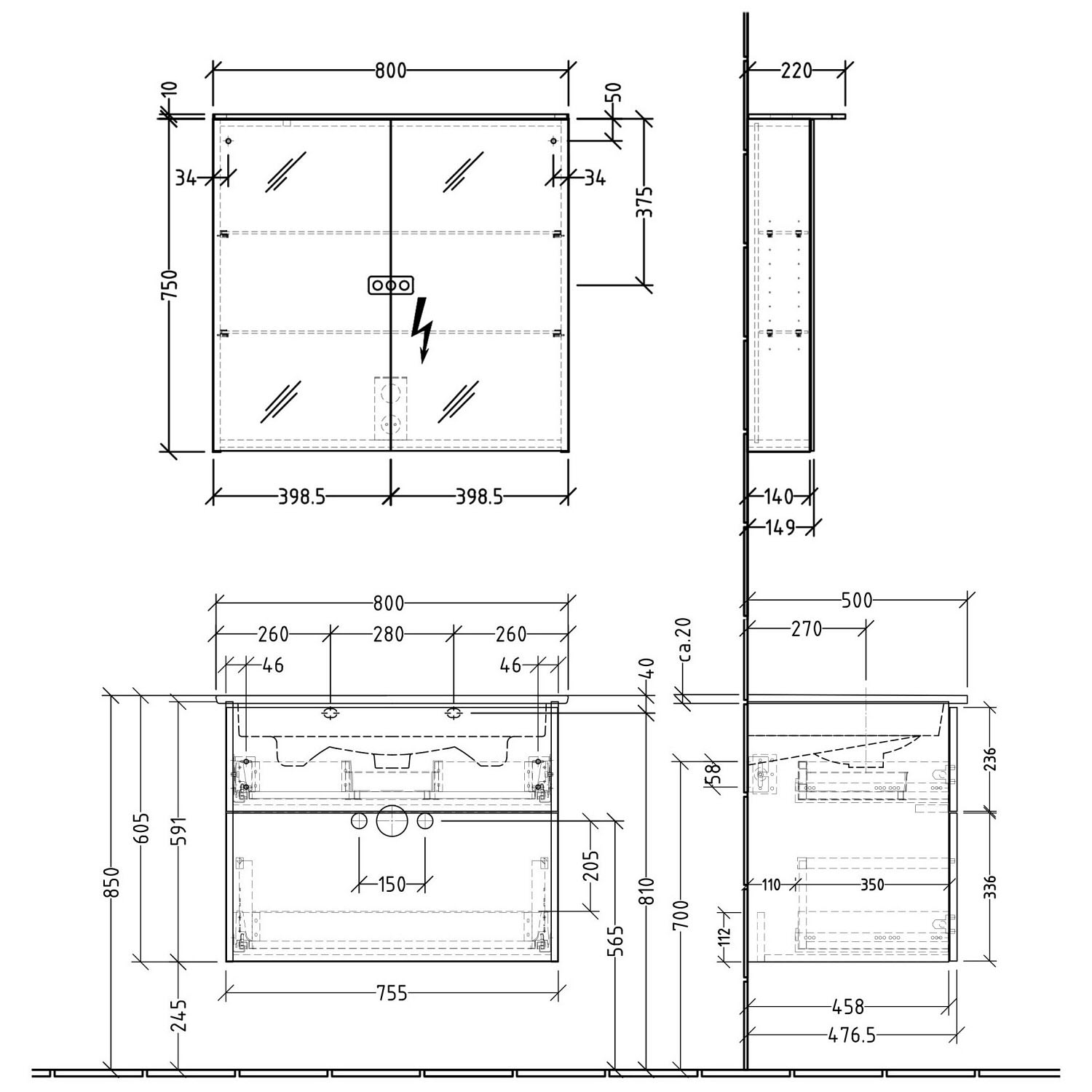 - Breite: 80 Tiefe inkl. Leuchte: 22 Höhe: 76 cm