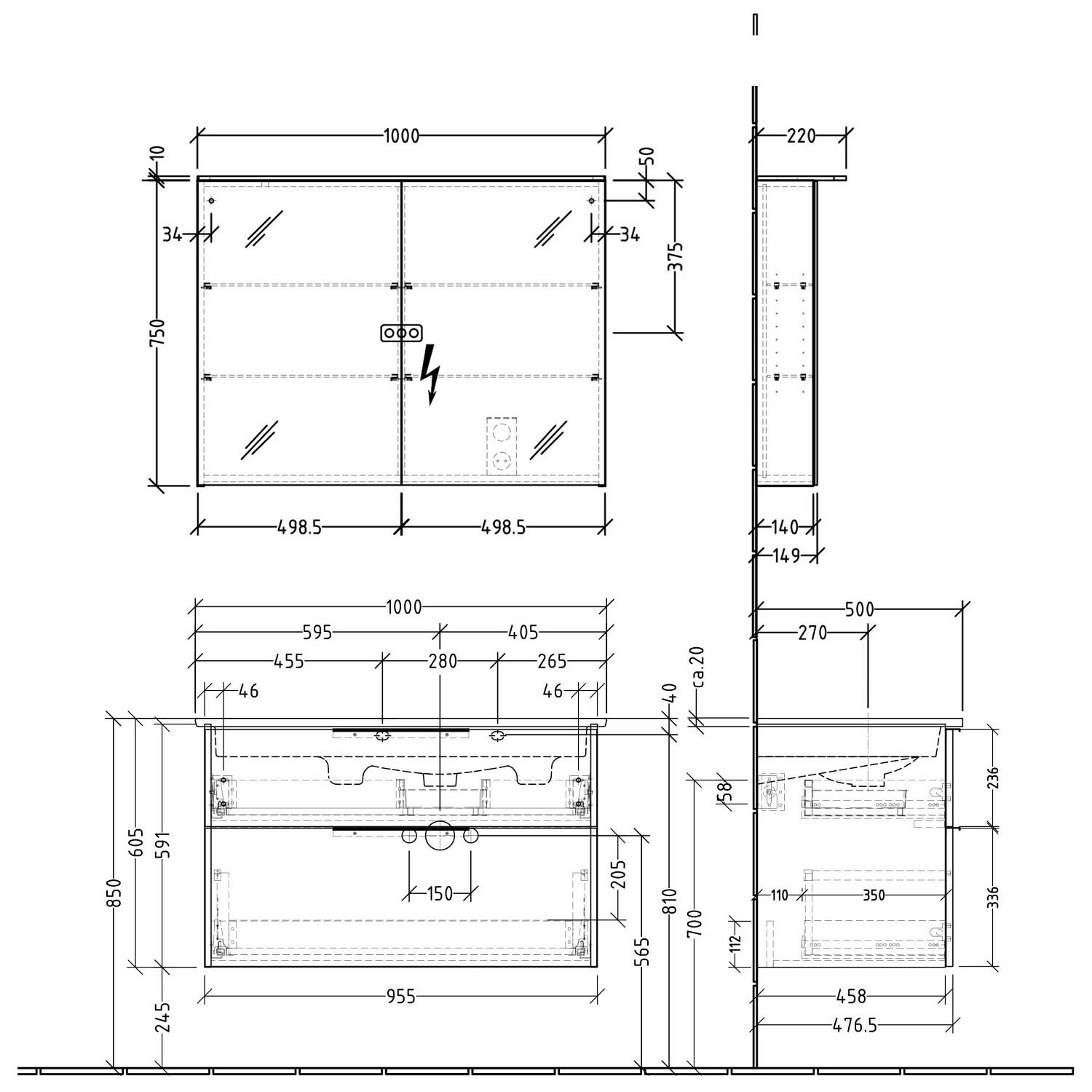 - Breite: 100 Tiefe inkl. Leuchte: 22 Höhe: 76 cm