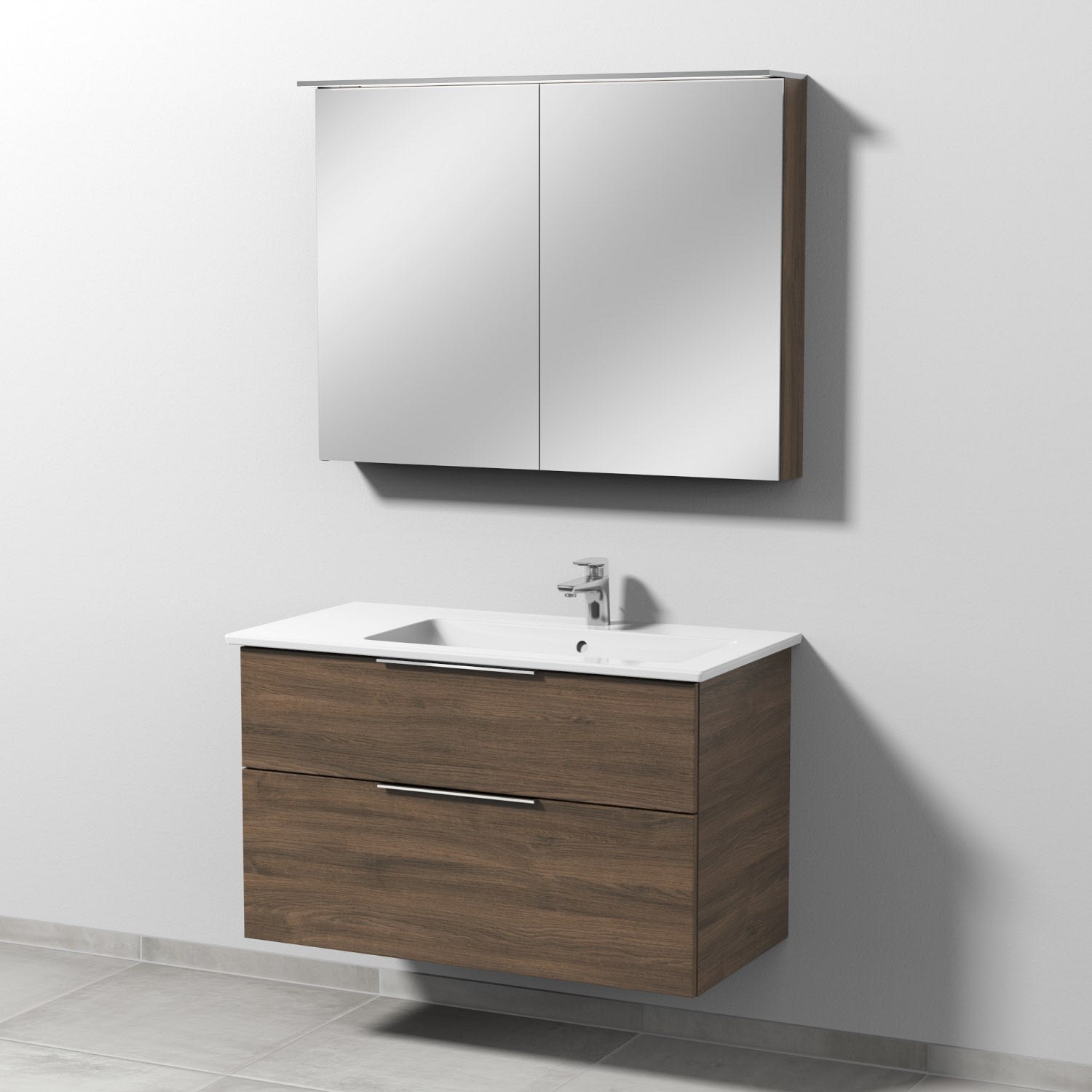 Sanipa 3way Möbelset inkl. Spiegelschrank "MALTE", 100 cm, mit Aufsatzgriffen, Becken rechts