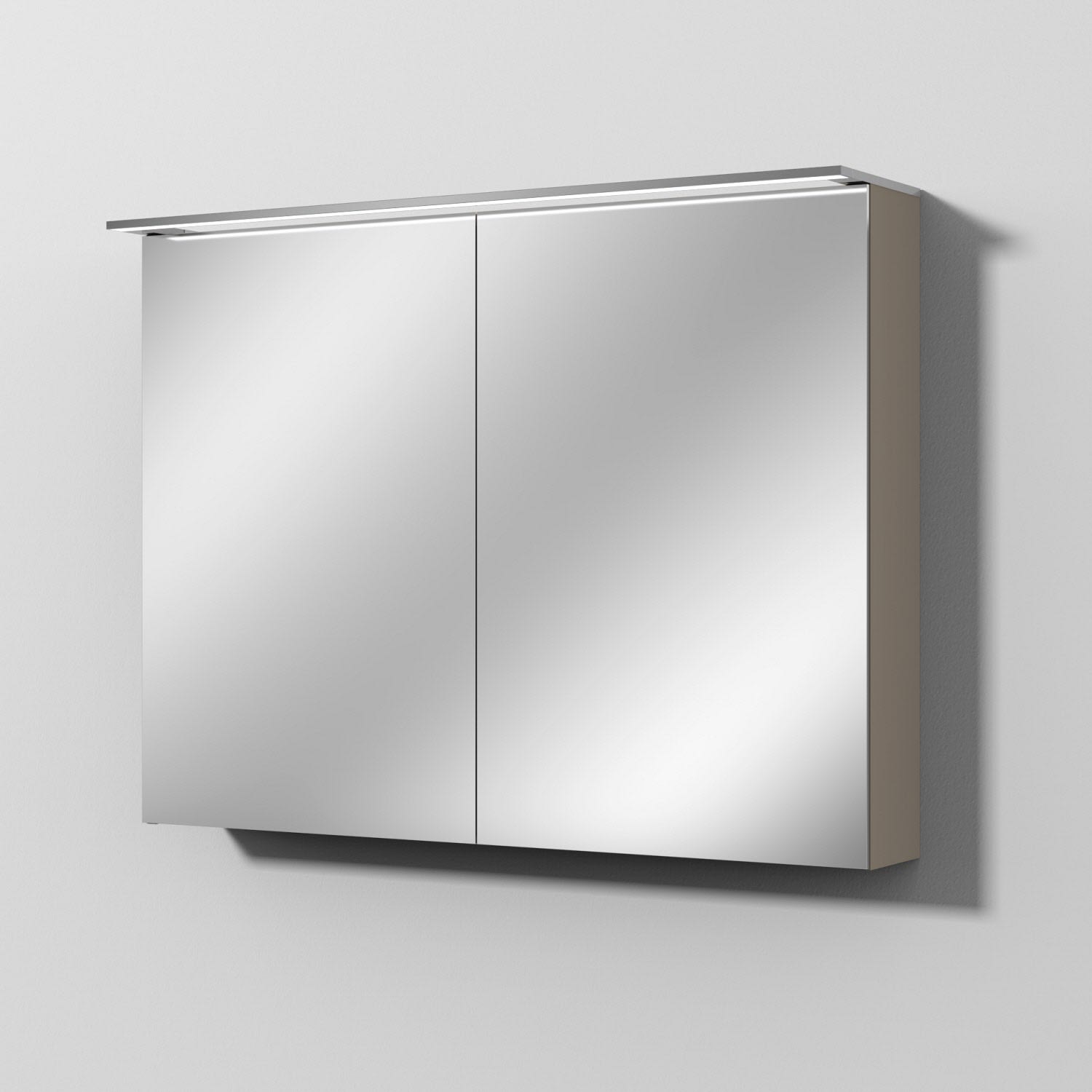 - 2 Spiegeltüren (Klebegriffe in chrom lose beigelegt) mit Teilung 1/2 + 1/2