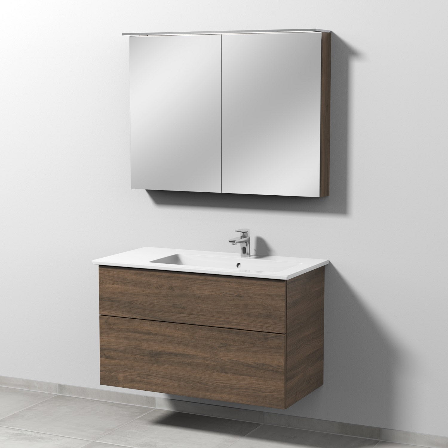 bestehend aus LED-Spiegelschrank und Waschtischunterschrank inkl. Keramik-Waschtisch von Villeroy & Boch