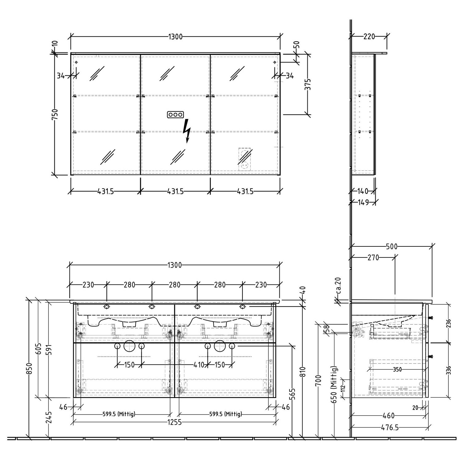- Breite: 130 Tiefe inkl. Leuchte: 22 Höhe: 76 cm