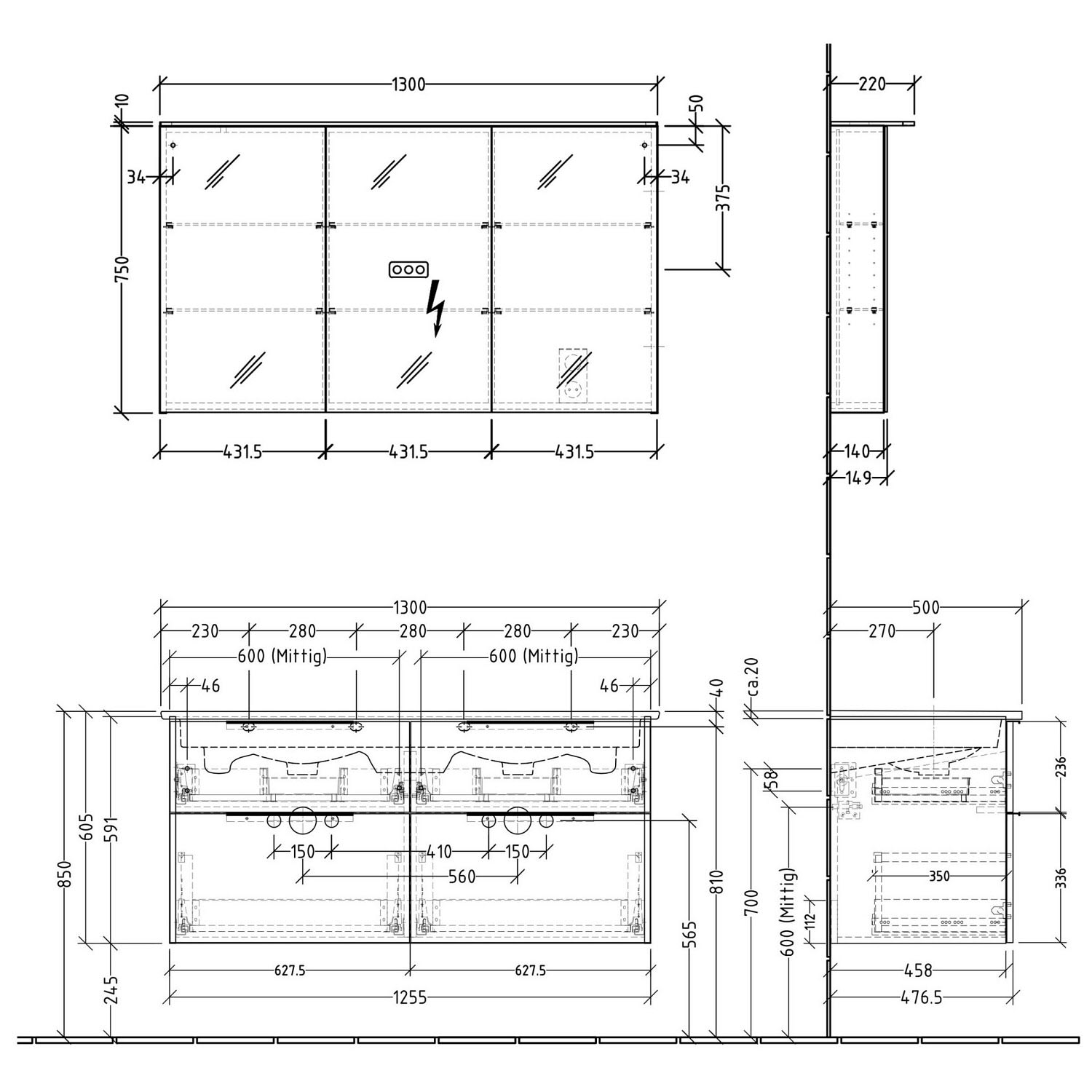 Sanipa 3way Möbelset inkl. Spiegelschrank "MALTE", 130 cm, mit Aufsatzgriffen