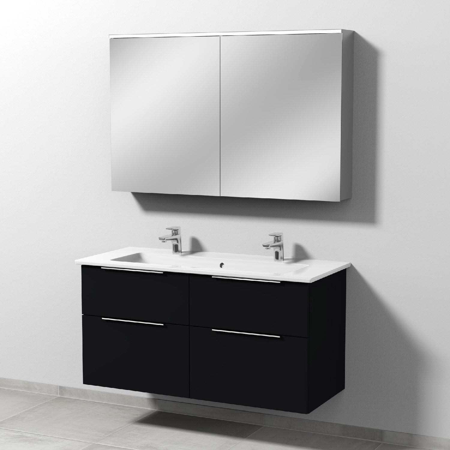 Sanipa 3way Möbelset inkl. Spiegelschrank "ARND", 120 cm, mit Aufsatzgriffen, Doppelwaschtisch