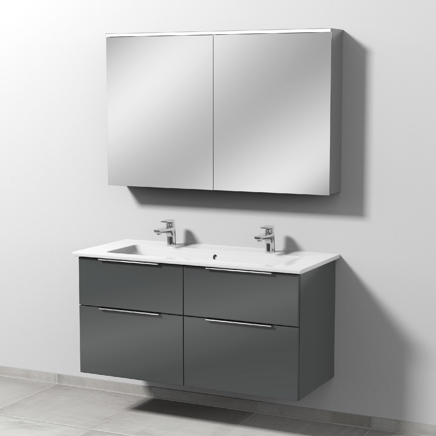Sanipa 3way Möbelset inkl. Spiegelschrank "ARND", 120 cm, mit Aufsatzgriffen, Doppelwaschtisch