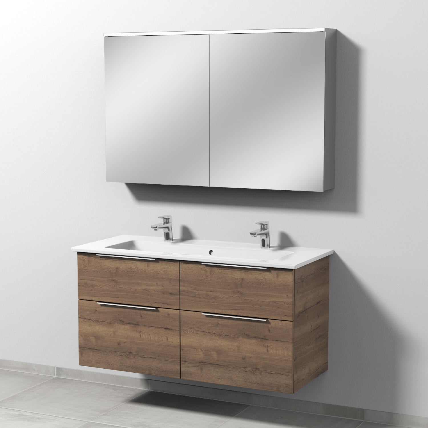 Sanipa 3way Möbelset inkl. Spiegelschrank "ARND", 120 cm, mit Aufsatzgriffen, Doppelwaschtisch