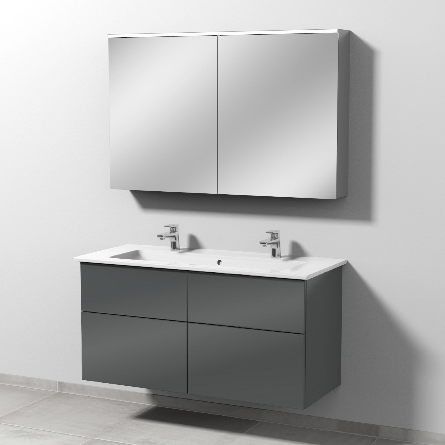 Sanipa 3way Möbelset inkl. Spiegelschrank "ARND", 120 cm, mit Push to open, Doppelwaschtisch