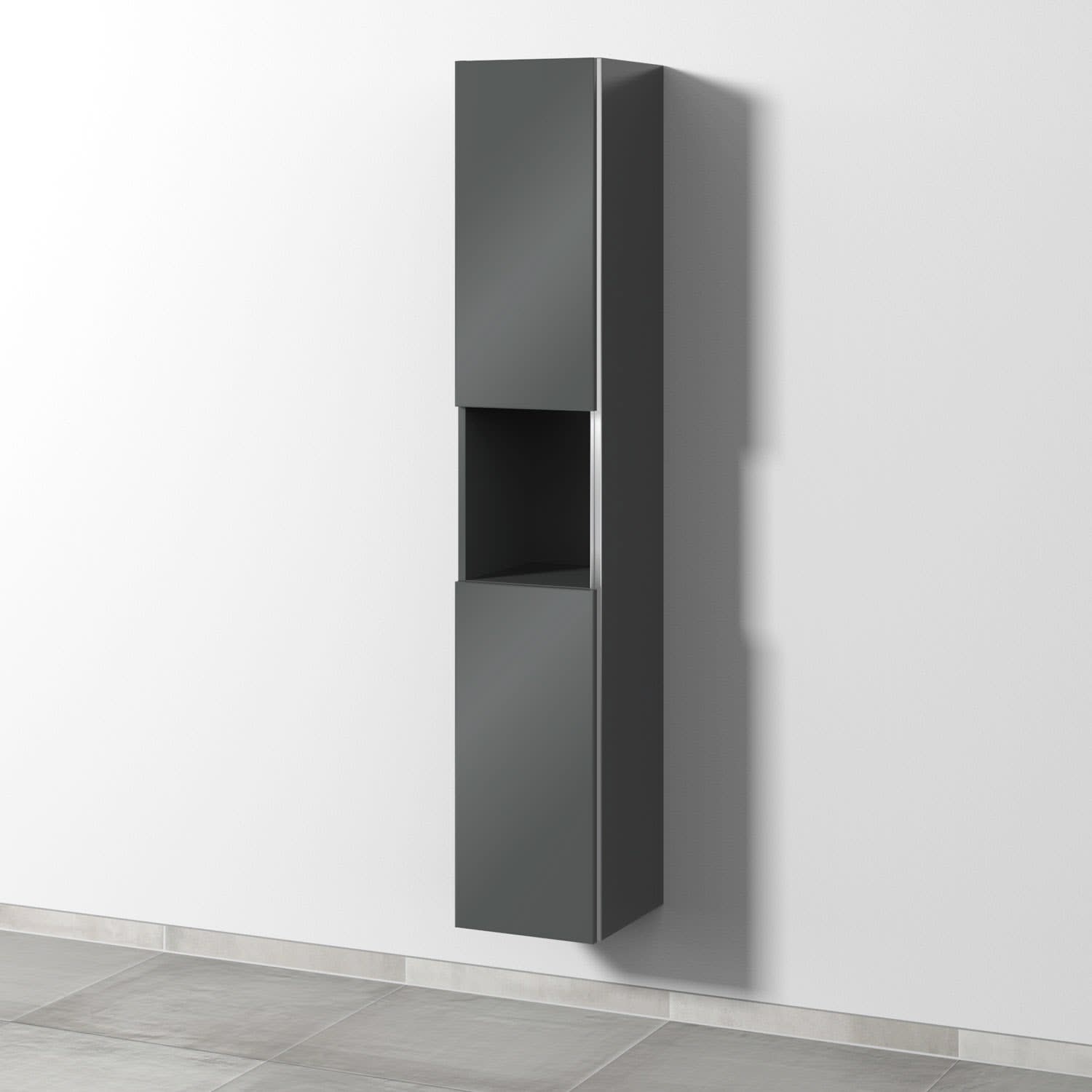 Sanipa 3way Hochschrank 30 cm, 1 offenes Fach, 2 Türen mit Türanschlag links, mit Stangengriff