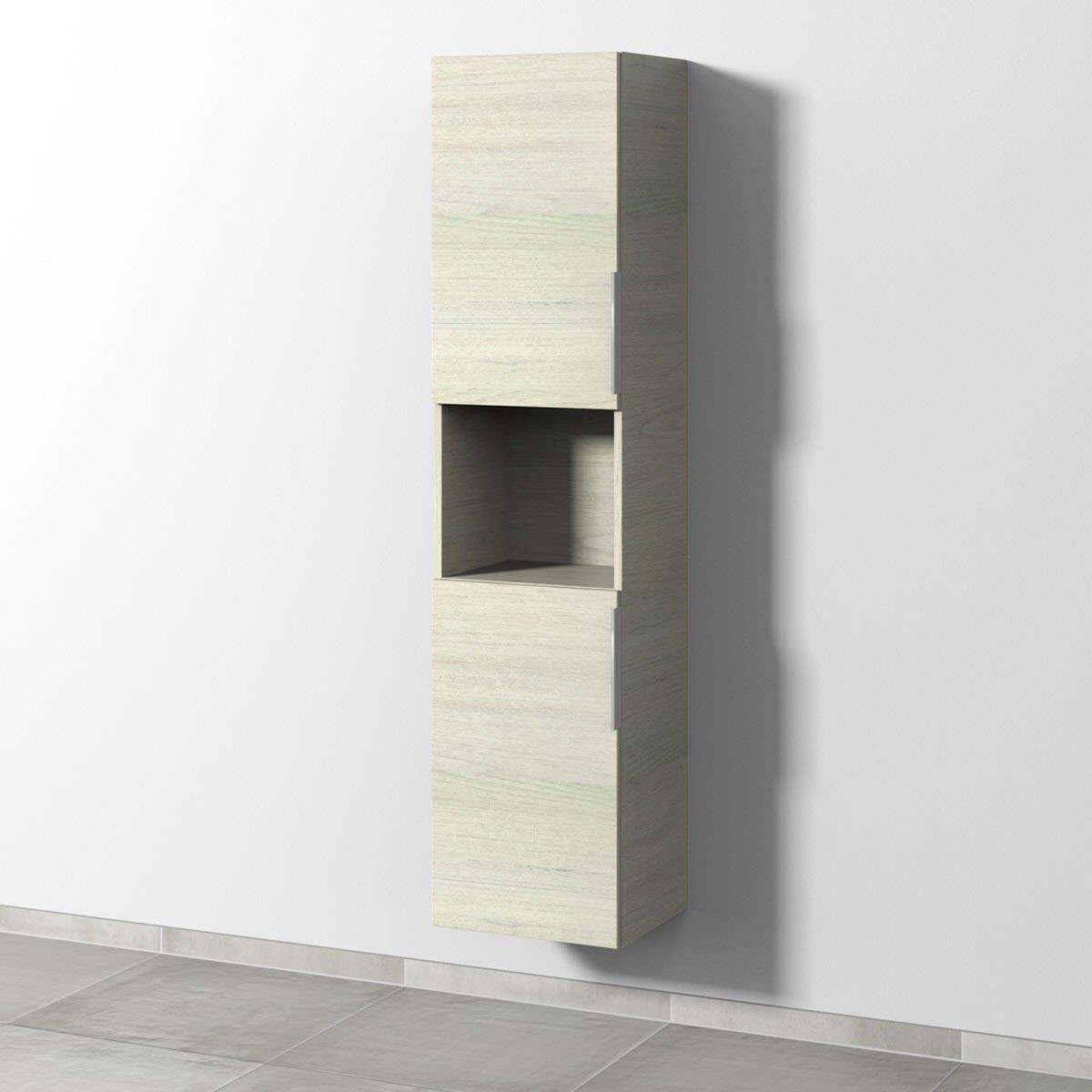 Sanipa 3way Hochschrank 40 cm, 1 offenes Fach, 2 Türen mit Türanschlag links, mit Aufsatzgriff