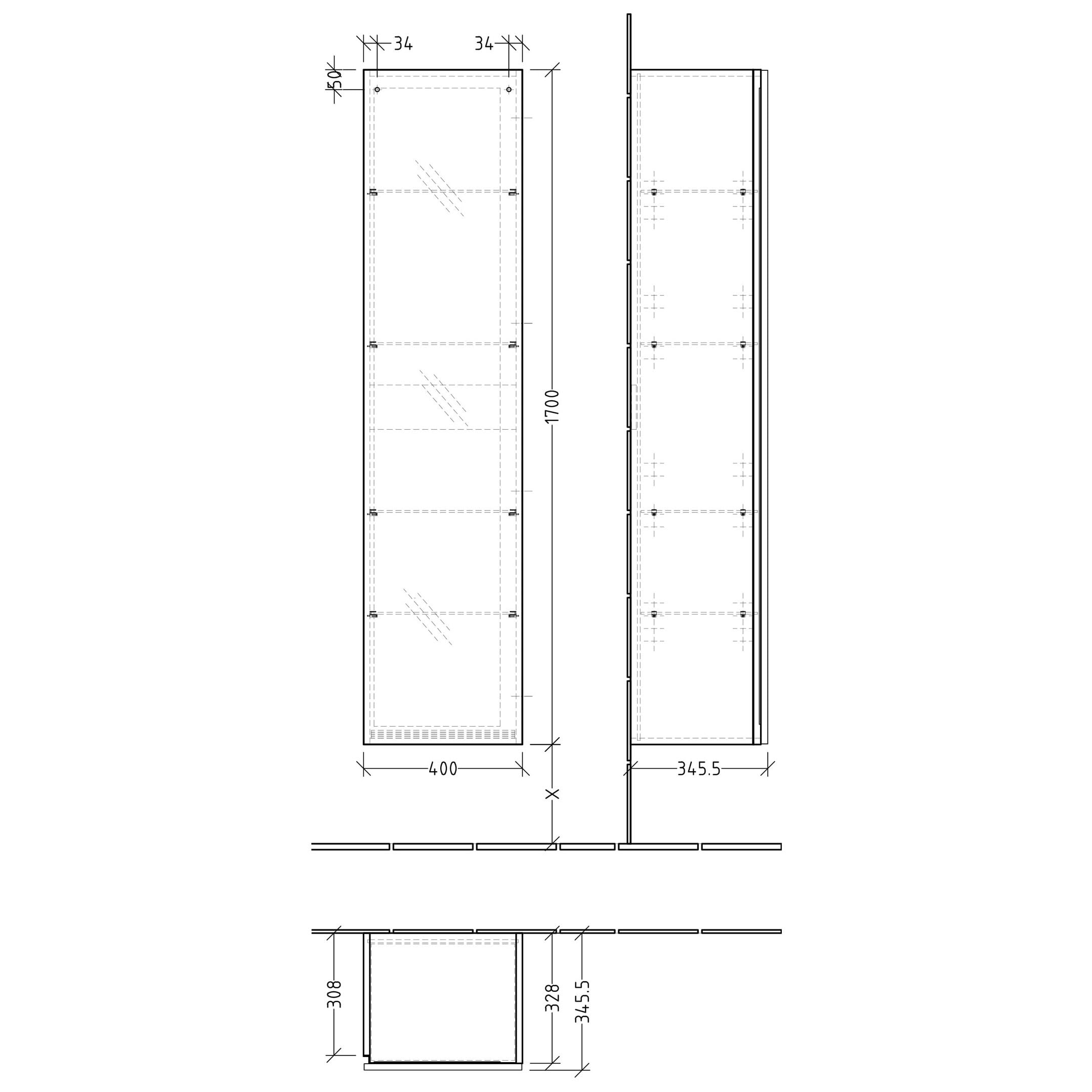 Sanipa 3way Hochschrank 40 cm, 1 Tür mit Türanschlag rechts und Innenspiegel