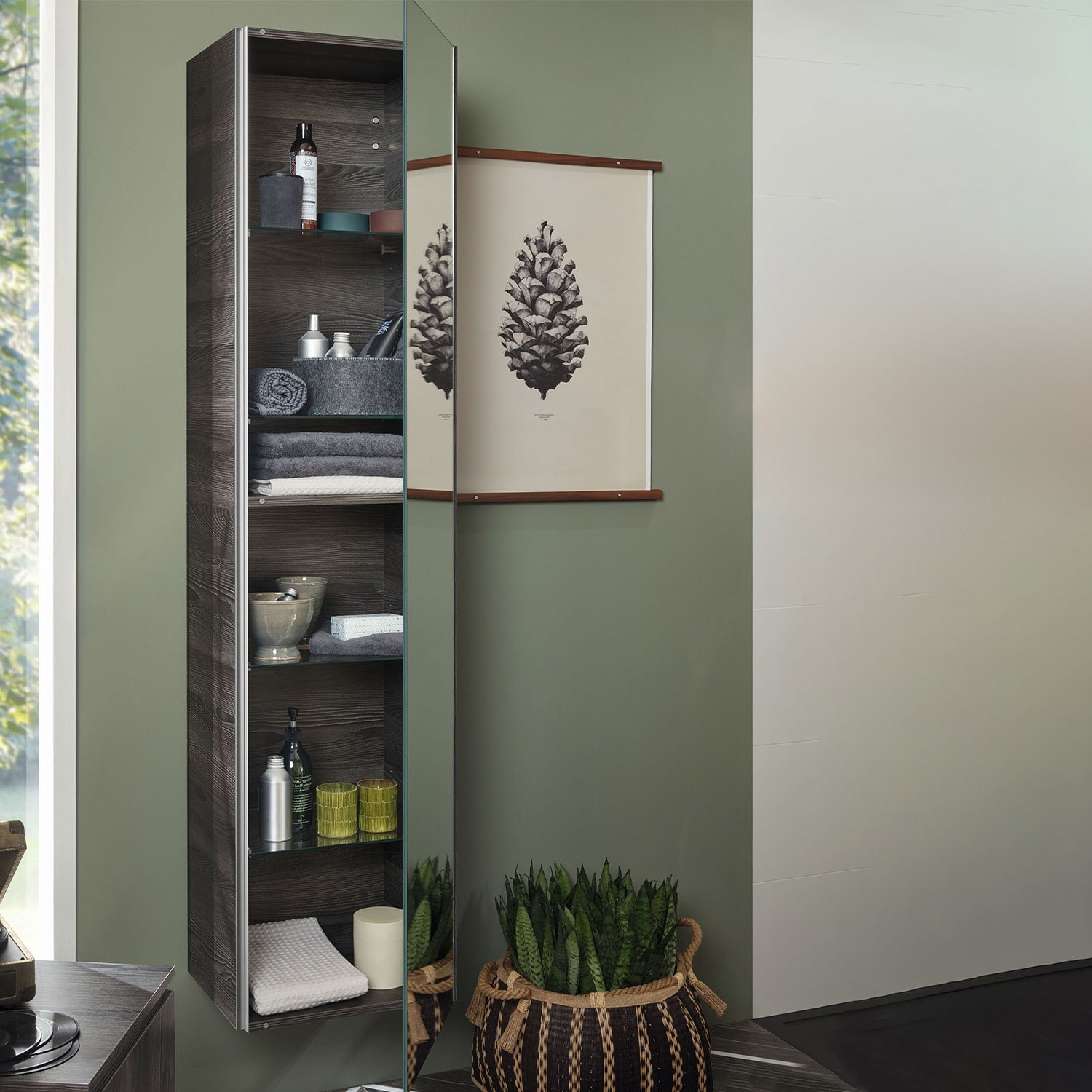 Sanipa 3way Hochschrank 40 cm, 1 Spiegel-Tür mit Türanschlag rechts