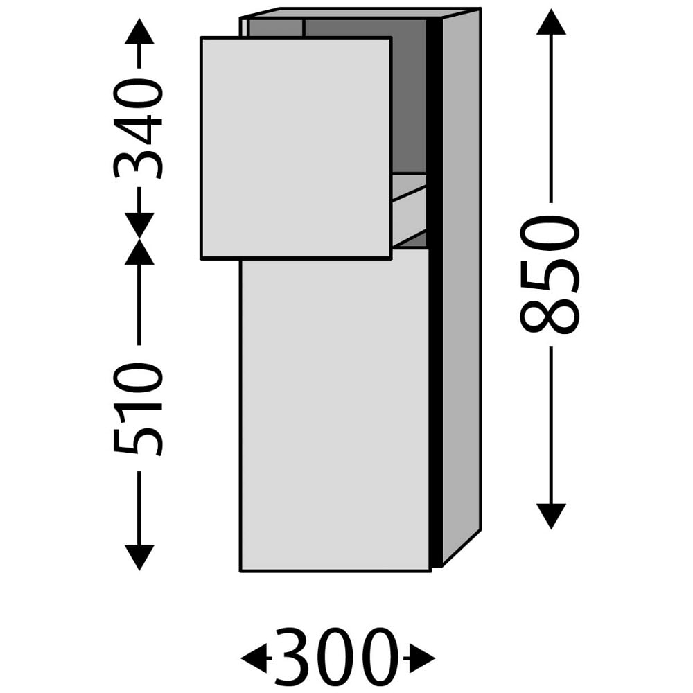 Sanipa 3way Hochschrank 30 cm, 1 offenes Fach, 2 Türen mit Türanschlag links