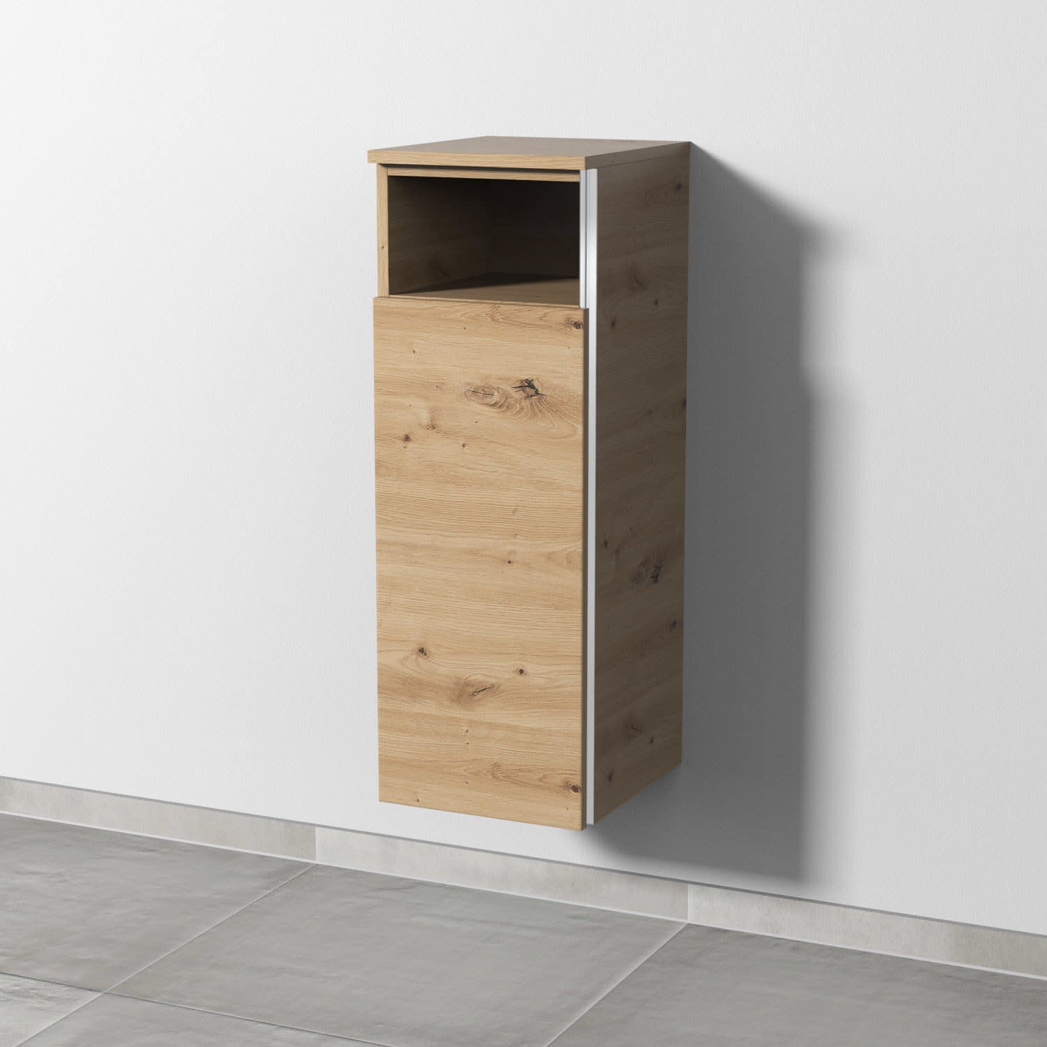 Sanipa 3way Mittelschrank 30 cm, 1 Tür mit Anschlag links, 1 offenes Fach, mit Griff-Leiste
