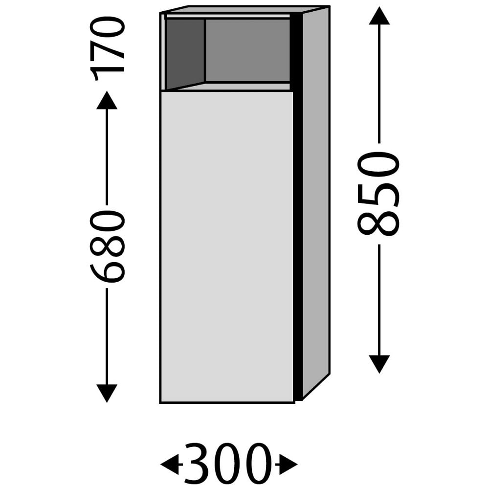 1 Tür, Anschlag links, 1 offenes Fach, mit Griff-Leiste