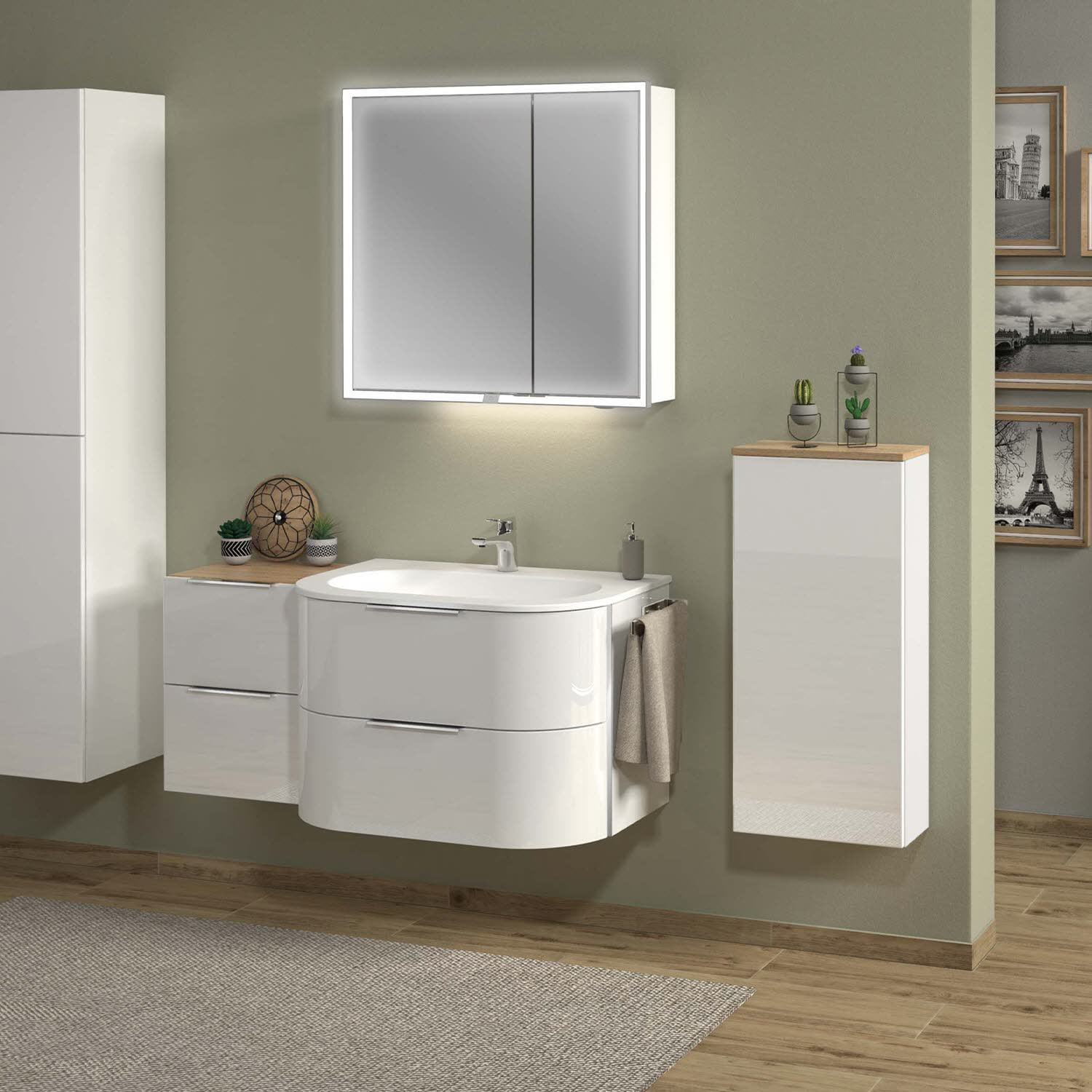 Sanipa Reflection Aluminium-Spiegelschrank ARND 80 mit LED-Leuchtpanel