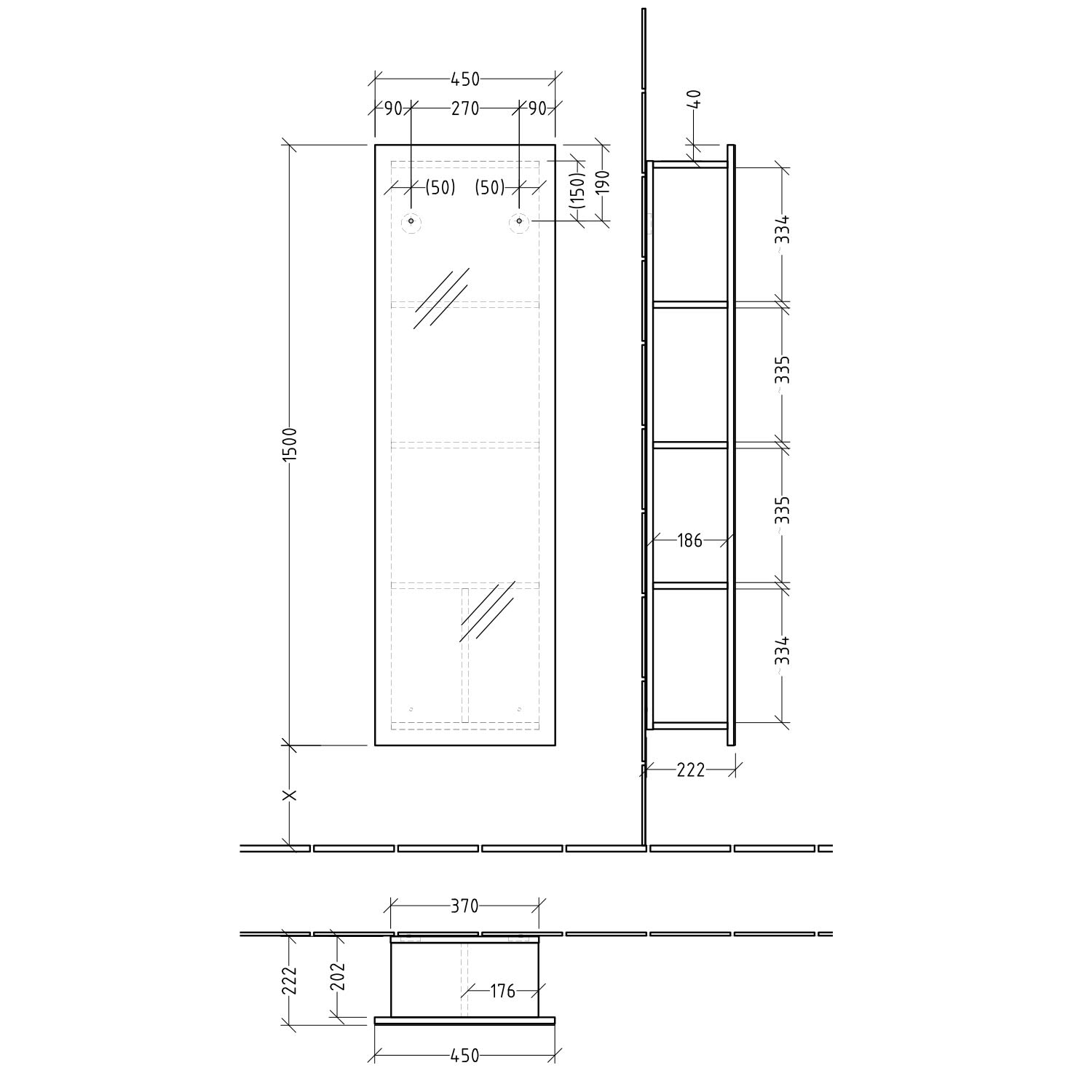 - seitlich 4 Fächer, davon 3x durchgehend offen, 1x links und rechts offen