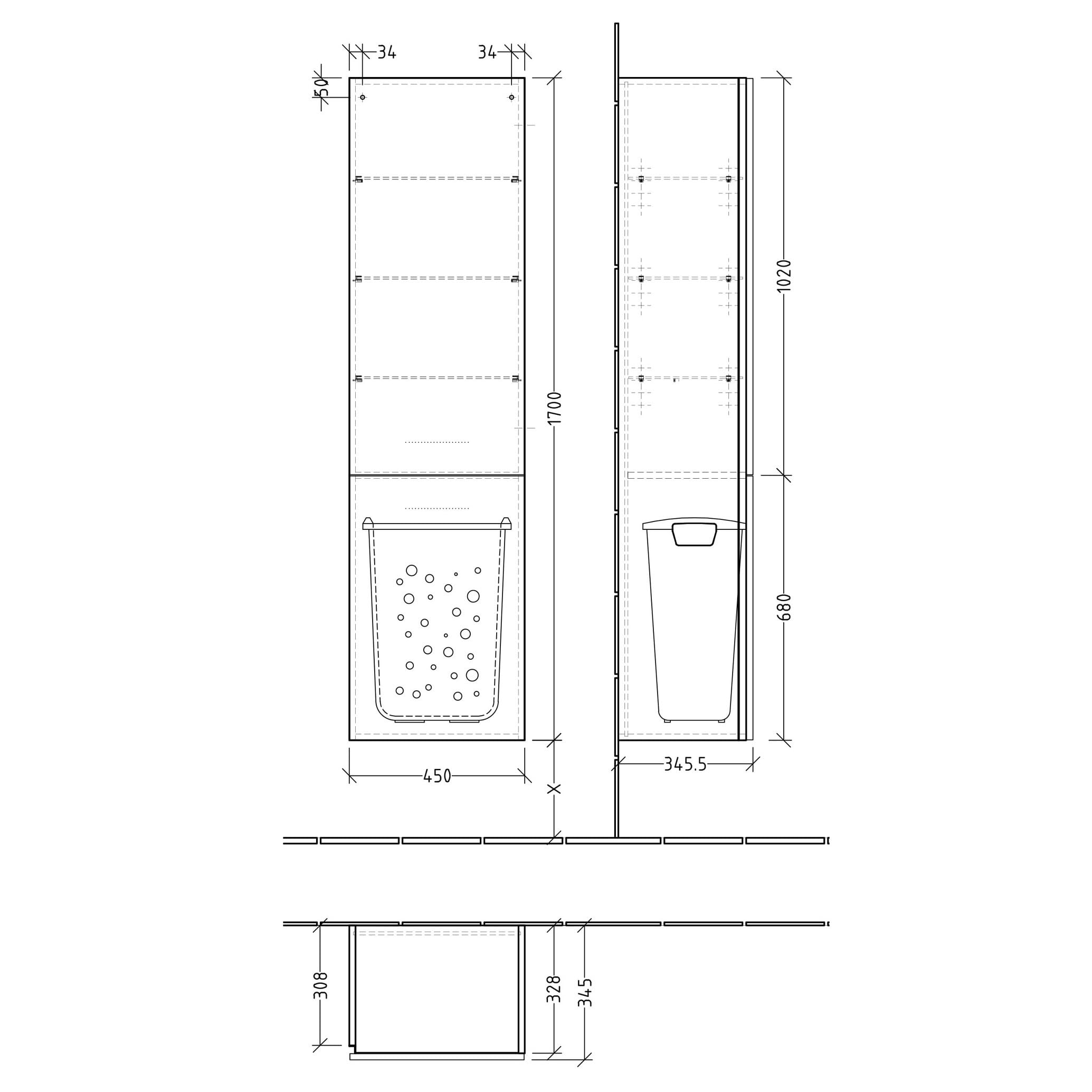 Sanipa 3way Stauraumschrank 45 cm, 1 Wäschekorbklappe, 1 Tür mit Türanschlag rechts