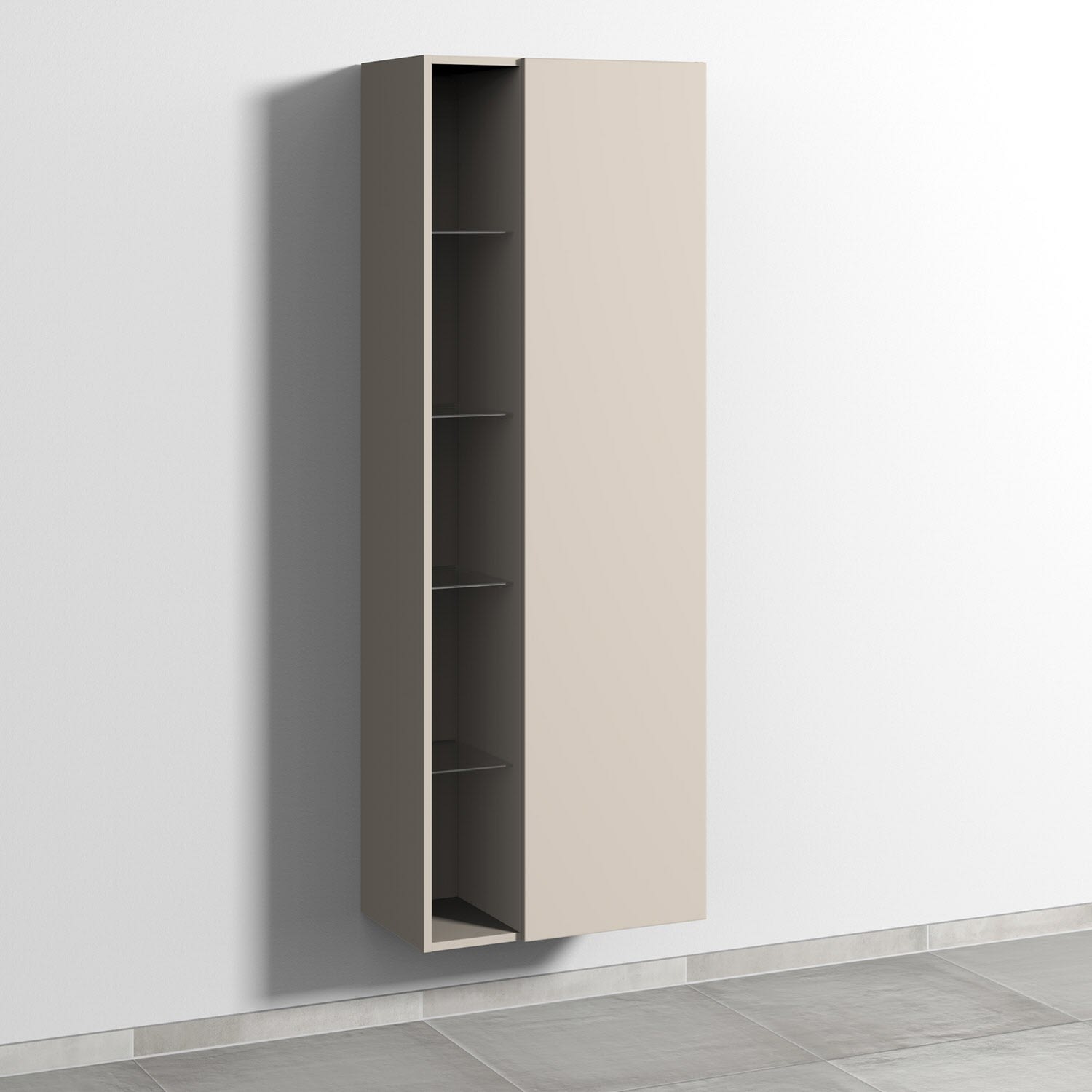 Sanipa 3way Stauraumschrank 60 cm, 1 offenes Fach links, 1 Tür mit Türanschlag rechts, mit Push to open
