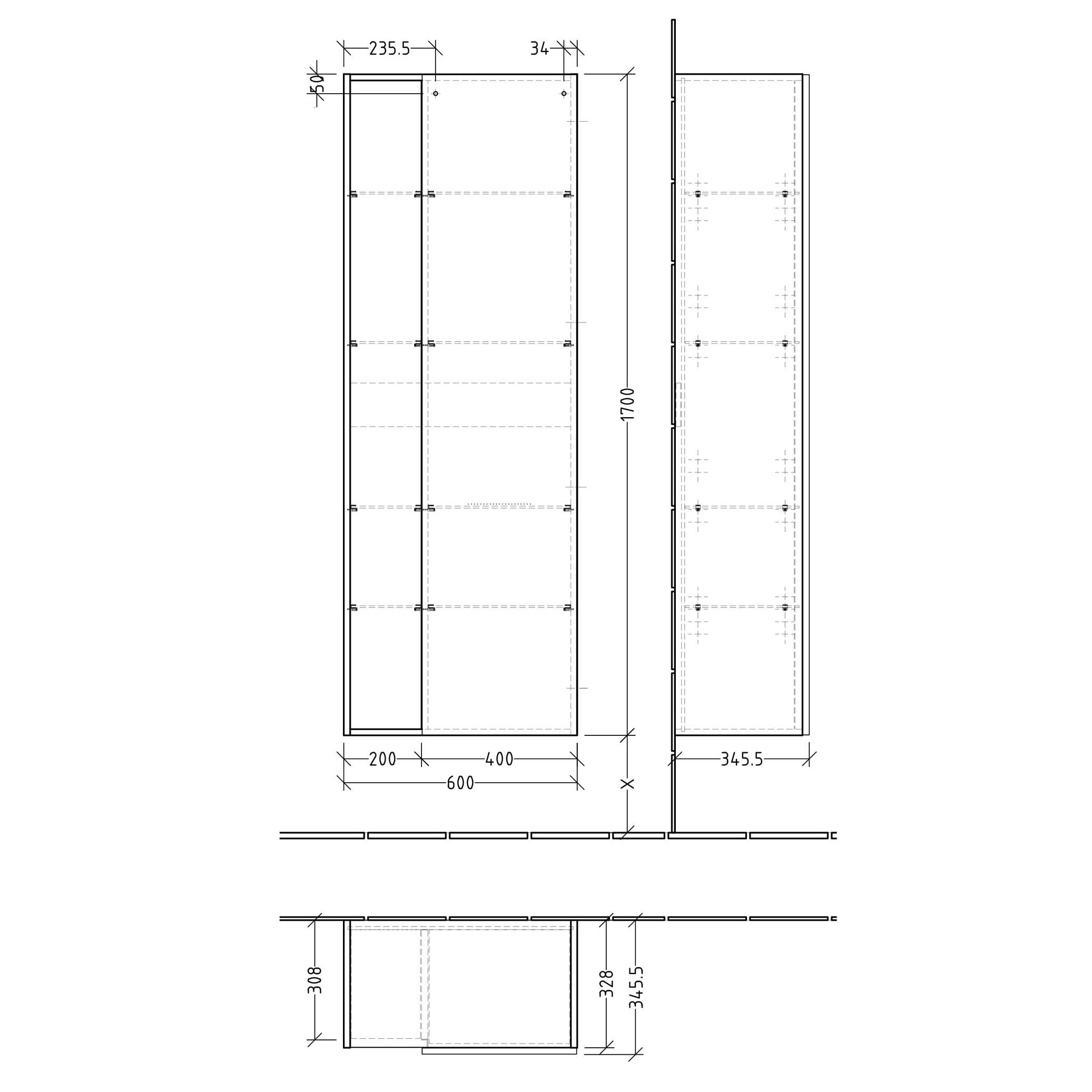 B: 60 T: 34,5 H: 170 cm