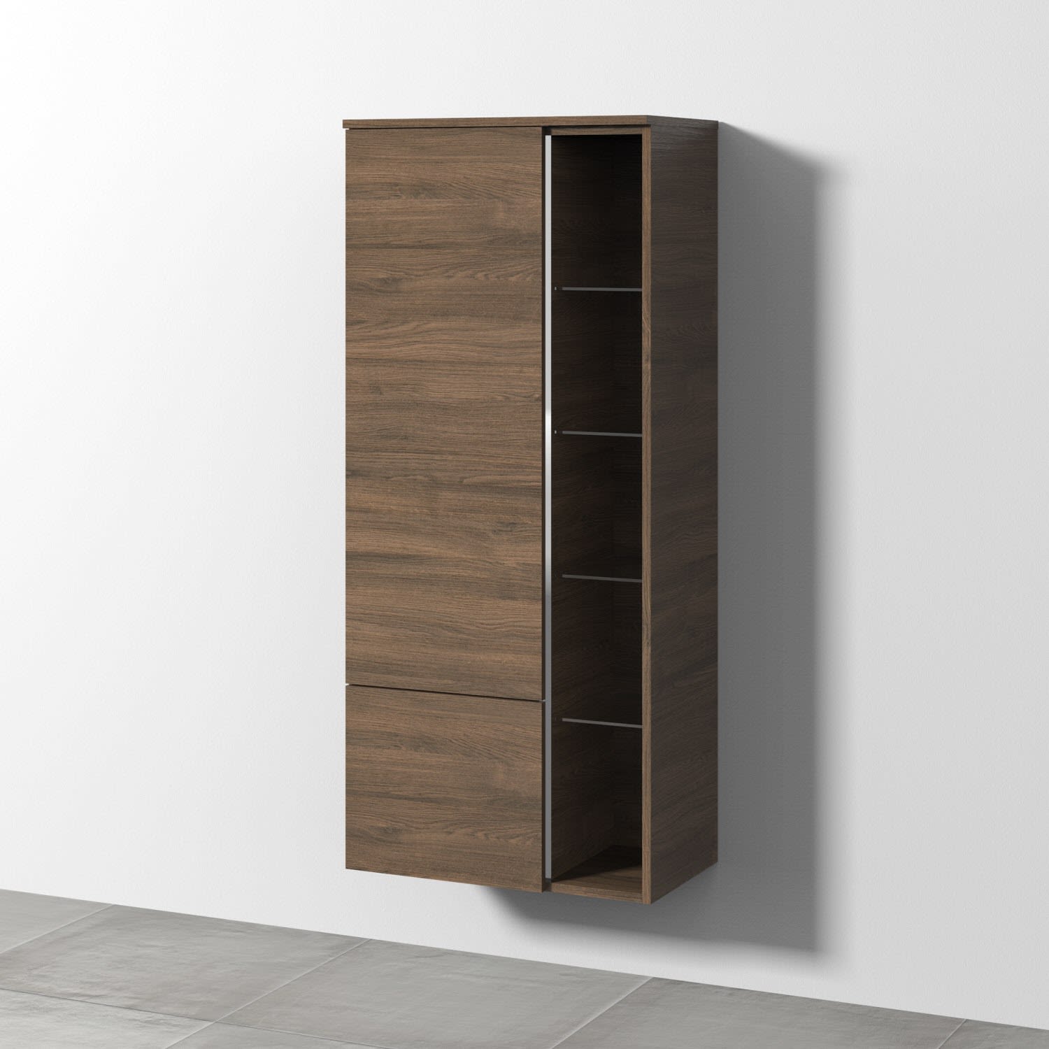 Sanipa 3way Stauraumschrank 60 cm, 1 offenes Fach rechts, 1 Auszug, 1 Tür mit Türanschlag links