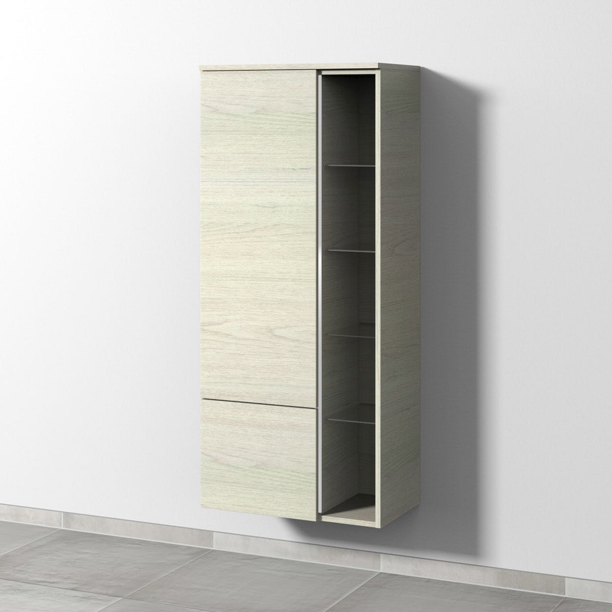Sanipa 3way Stauraumschrank 60 cm, 1 offenes Fach rechts, 1 Auszug, 1 Tür mit Türanschlag links