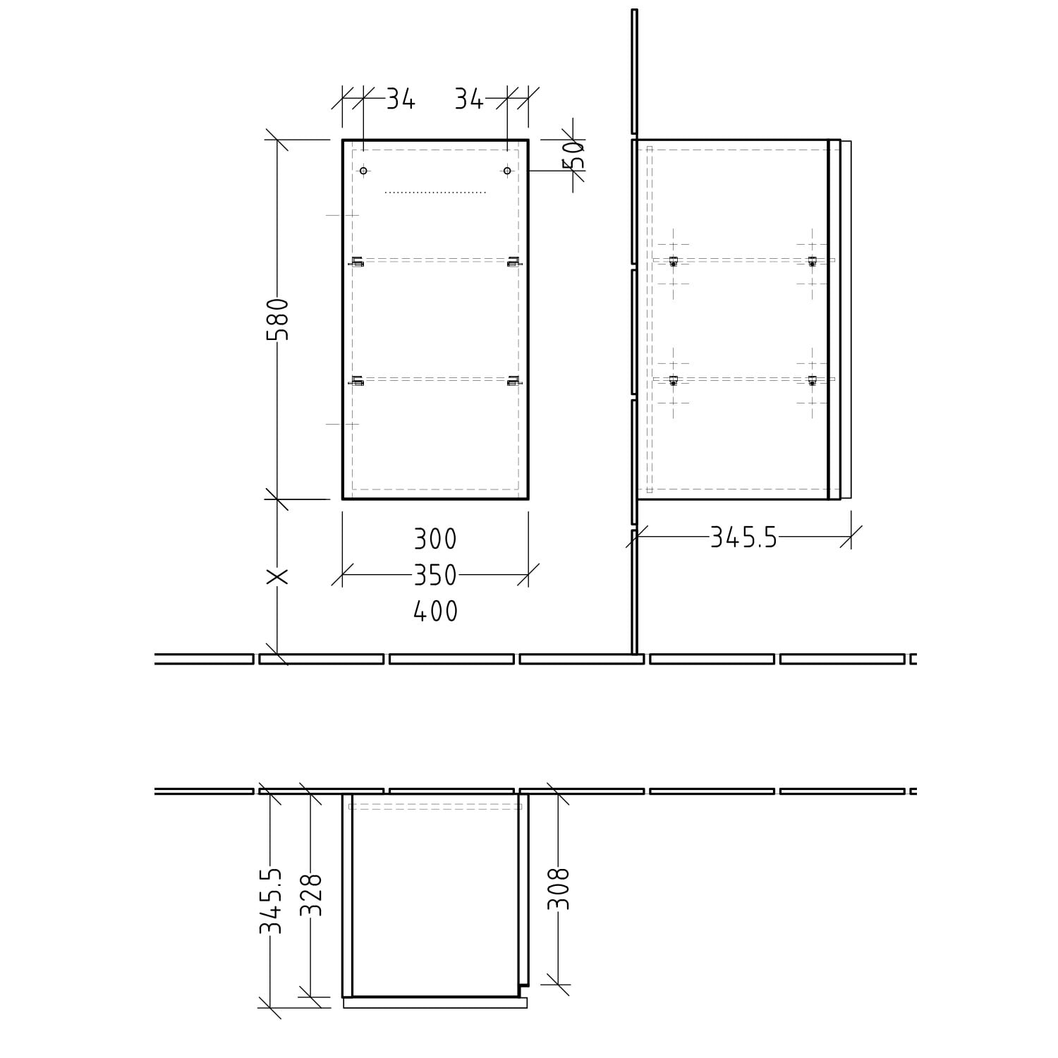 - Schrankaufhänger sind von außen befestigt (innen nicht sichtbar)