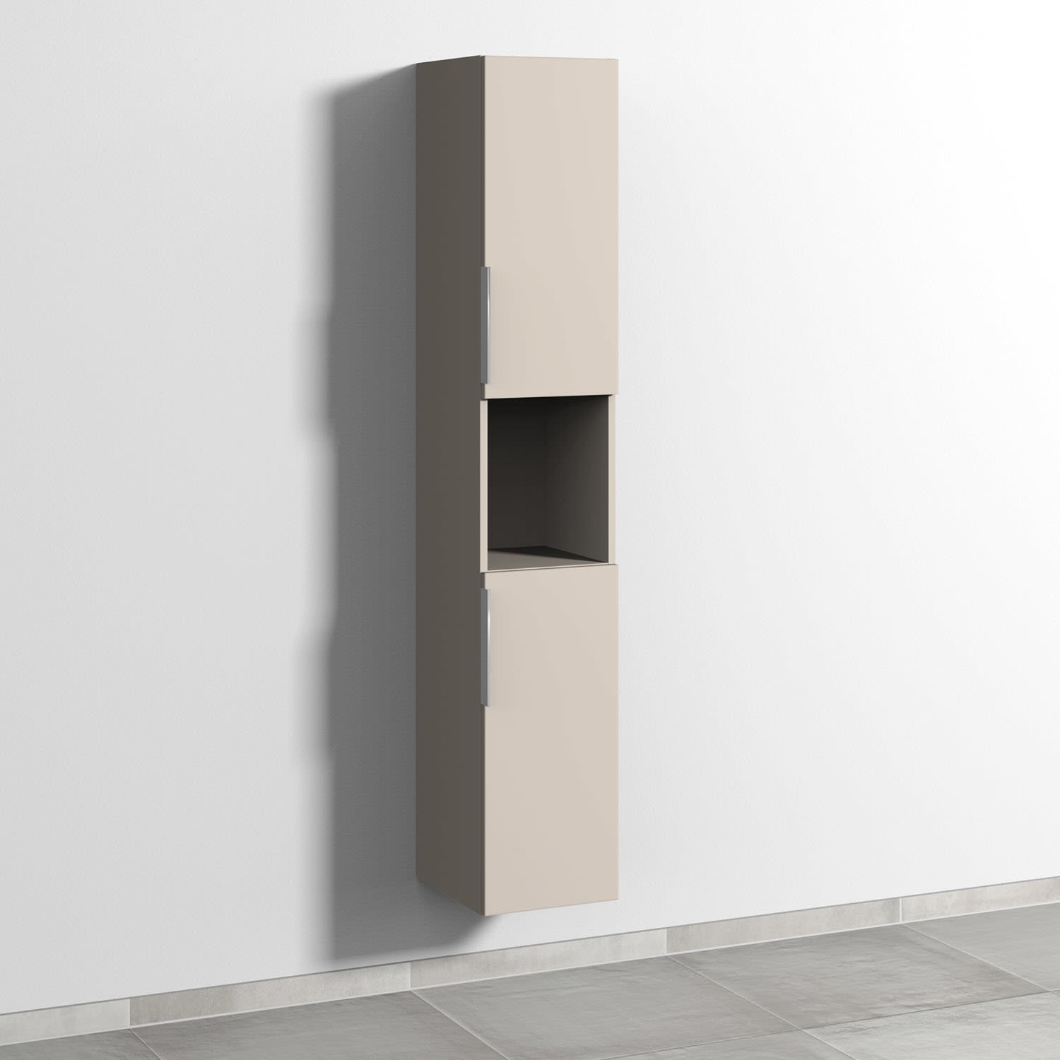 Sanipa 3way Hochschrank 30 cm, 1 offenes Fach, 2 Türen Anschlag rechts, mit Aufsatzgriff