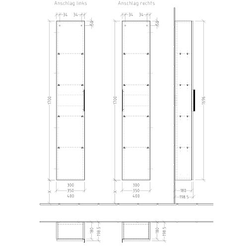 Sanipa 3way Hochschrank 35 cm tiefenreduziert, 1 Tür Anschlag links, mit Aufsatzgriff