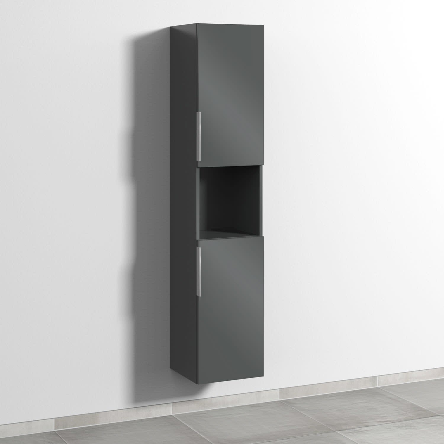 Sanipa 3way Hochschrank 35 cm, 1 offenes Fach, 2 Türen mit Türanschlag rechts, mit Aufsatzgriff