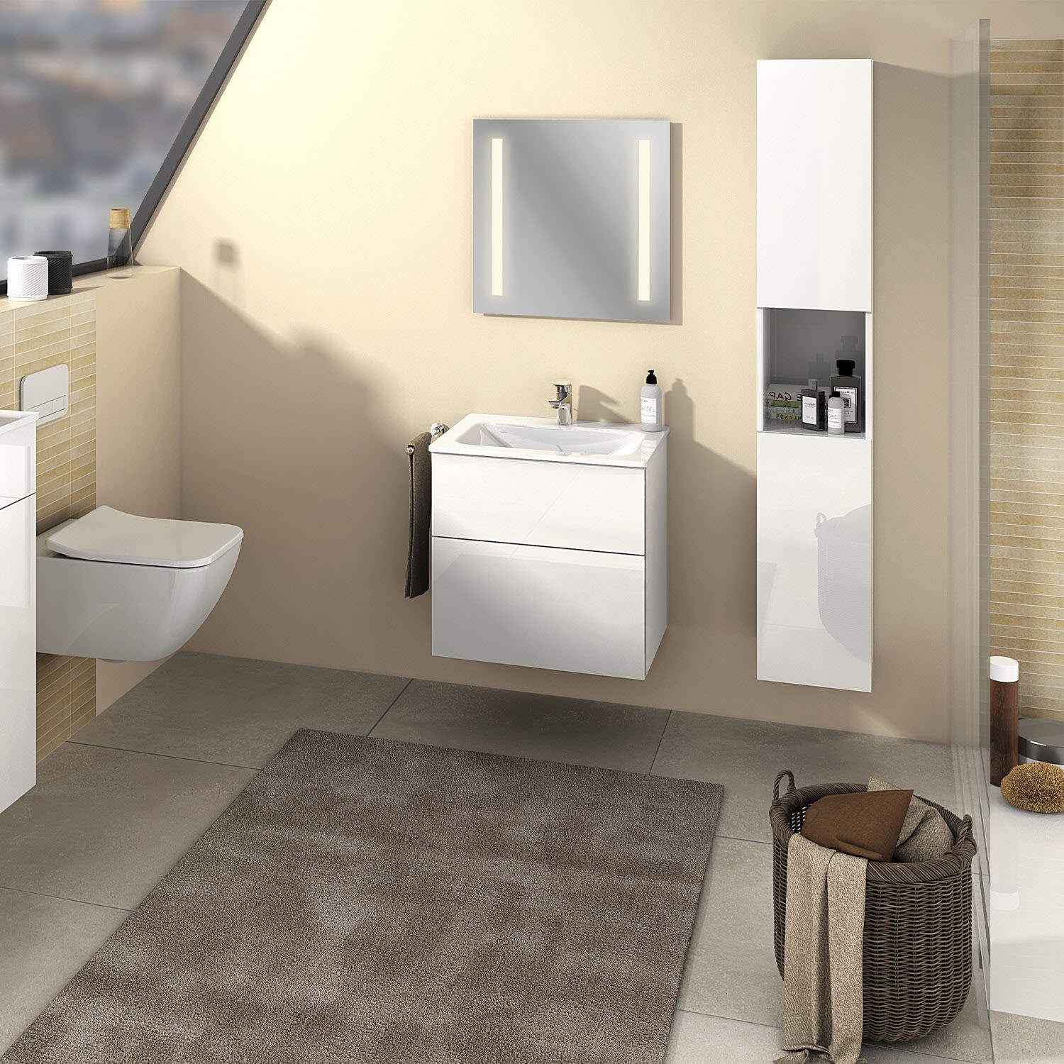 Sanipa 3way Hochschrank 40 cm, 1 offenes Fach, 2 Türen mit Türanschlag rechts, mit Push to open