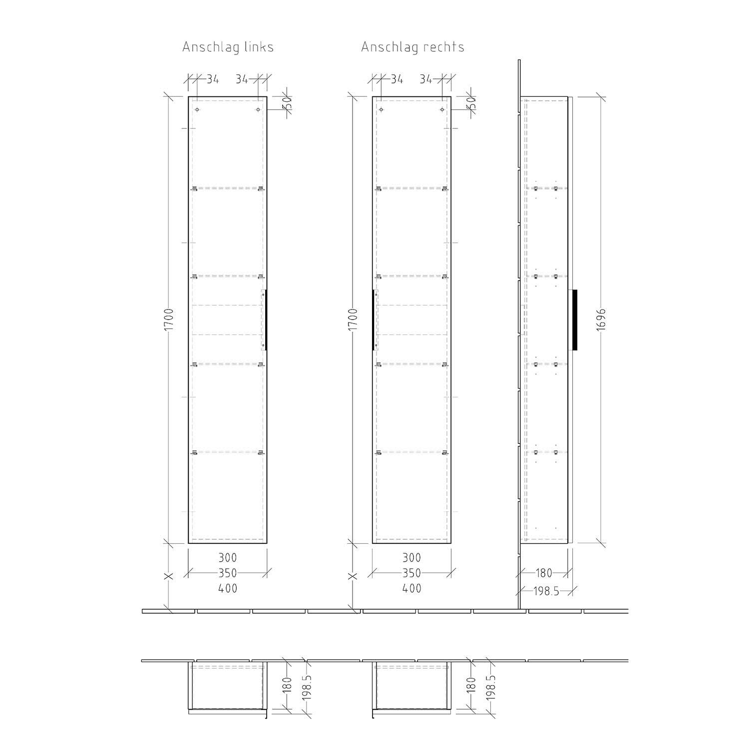 Sanipa 3way Hochschrank 40 cm tiefenreduziert, 1 Tür Anschlag rechts, mit Aufsatzgriff