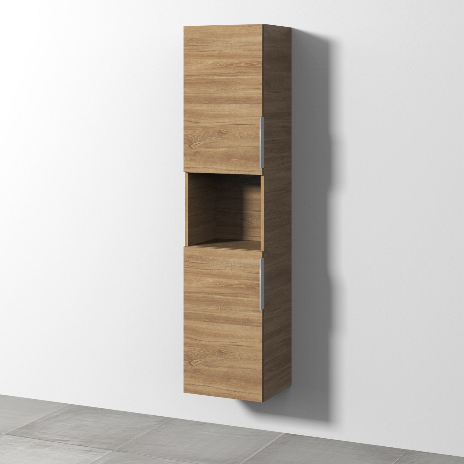 Sanipa 3way Hochschrank 40 cm, 1 offenes Fach, 2 Türen mit Türanschlag links, mit Aufsatzgriff schwarz matt