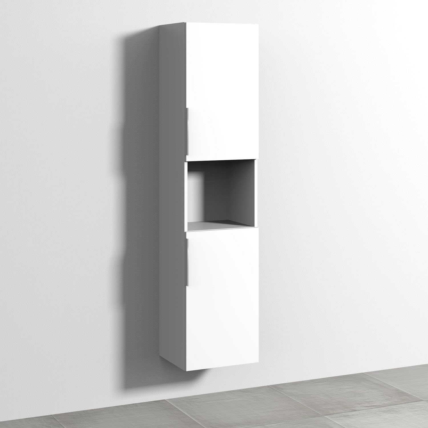 Sanipa 3way Hochschrank 40 cm, 1 offenes Fach, 2 Türen mit Türanschlag rechts, mit Aufsatzgriff schwarz matt