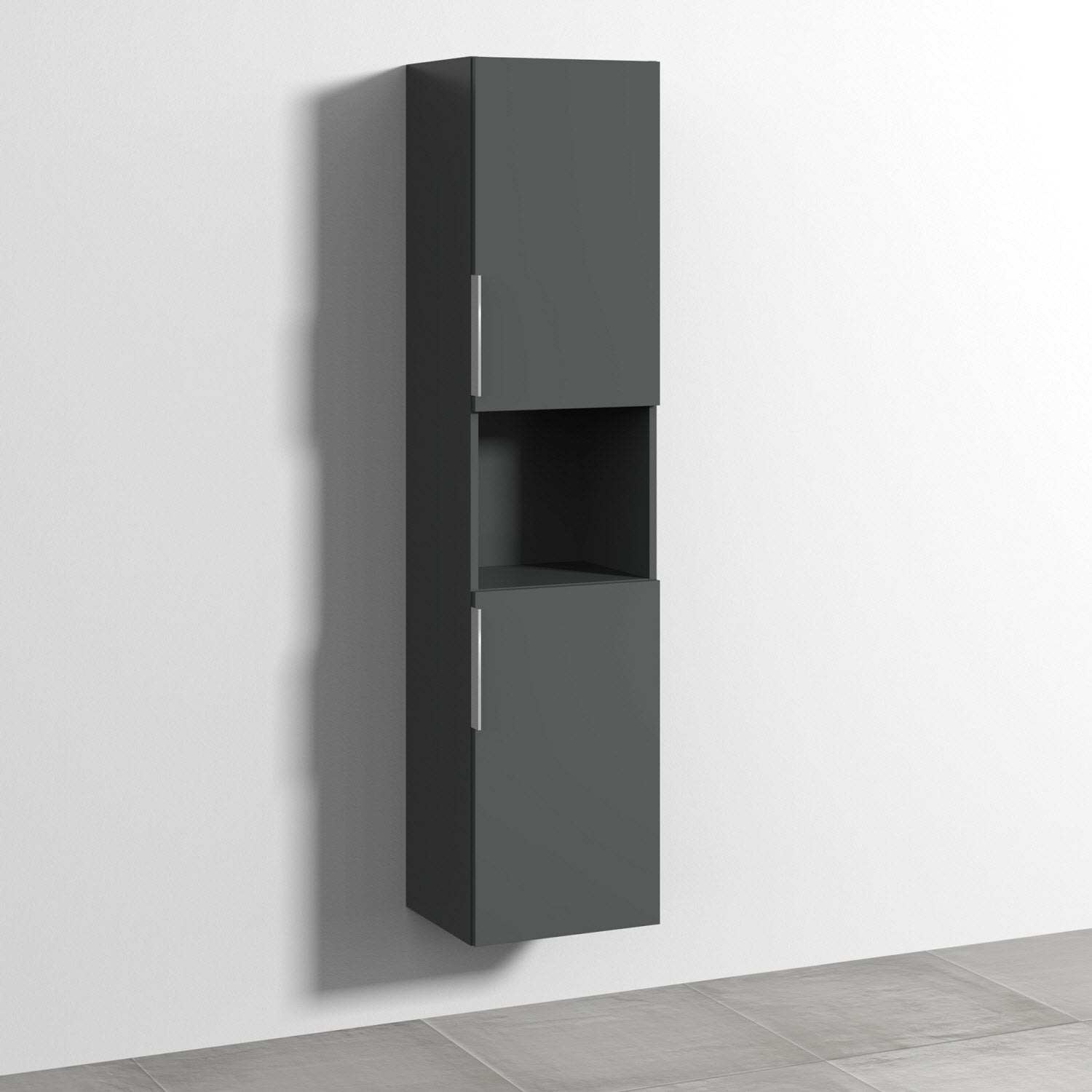 Sanipa 3way Hochschrank 40 cm, 1 offenes Fach, 2 Türen mit Türanschlag rechts, mit Aufsatzgriff schwarz matt