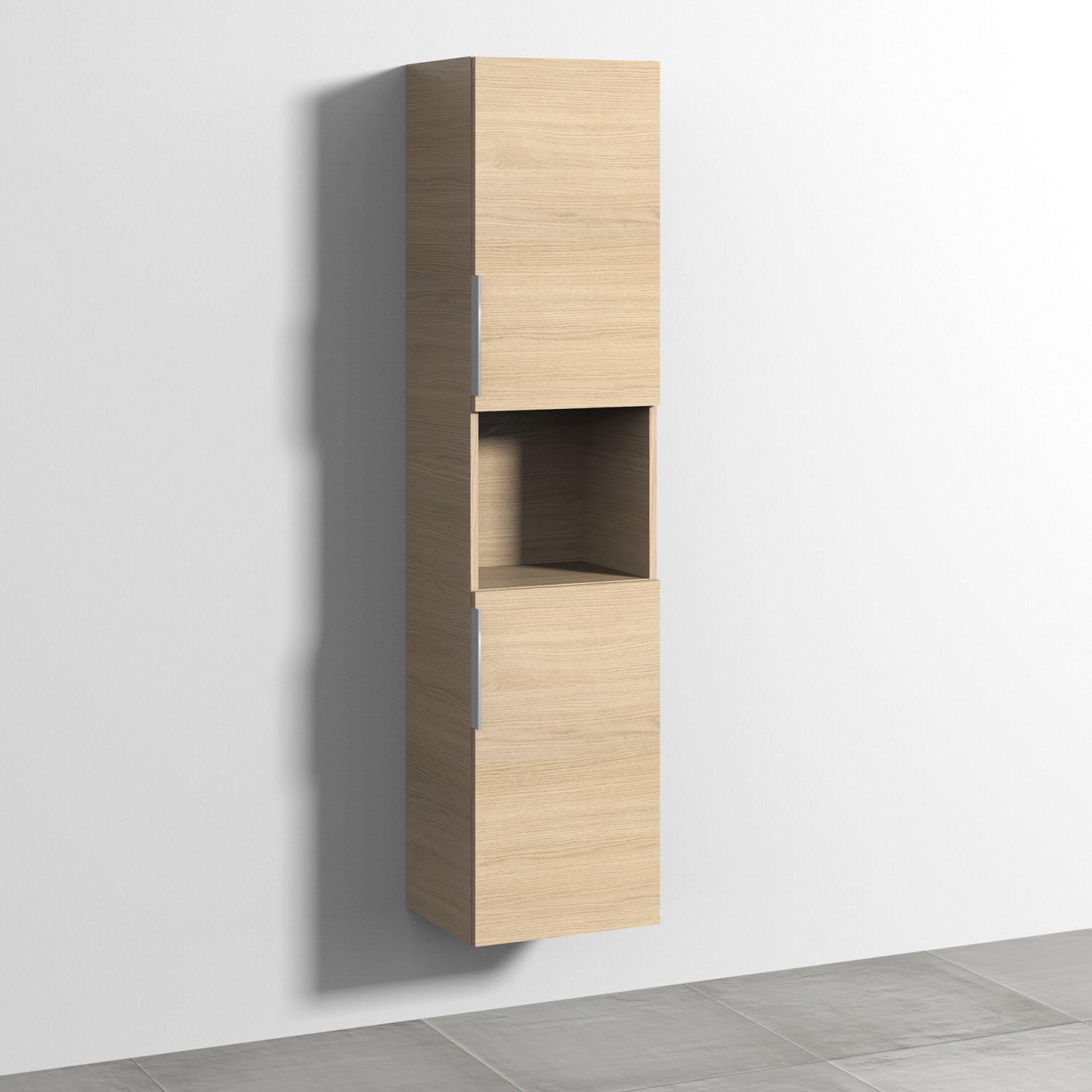 Sanipa 3way Hochschrank 40 cm, 1 offenes Fach, 2 Türen mit Türanschlag rechts, mit Aufsatzgriff schwarz matt