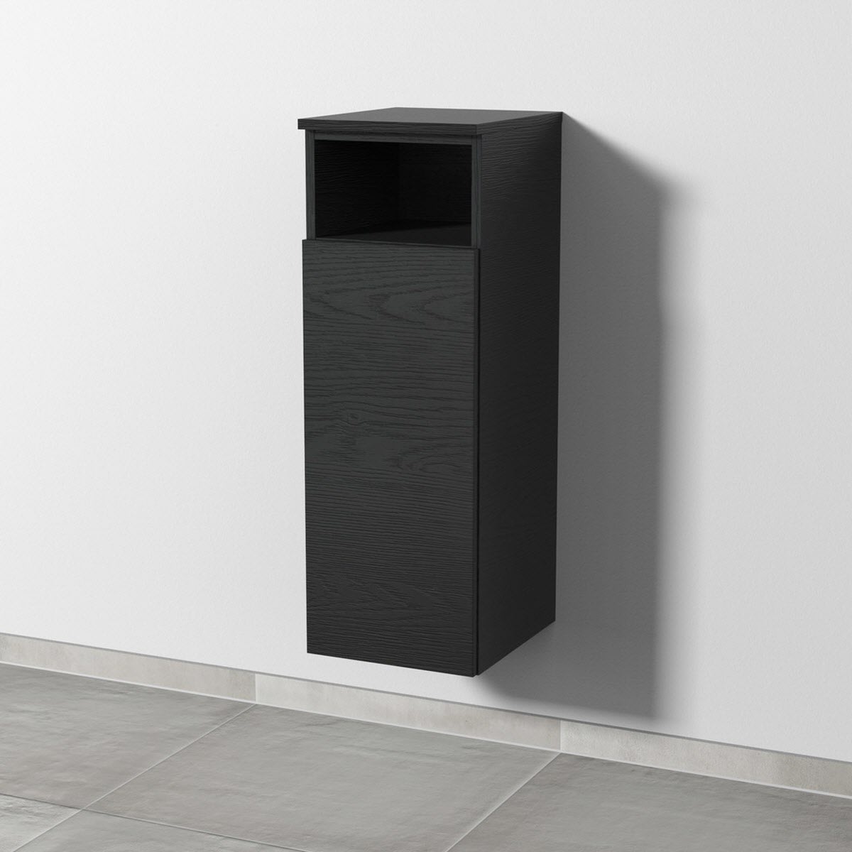 Sanipa 3way Mittelschrank 30 cm, 1 Tür mit Anschlag links, 1 offenes Fach, Push to open