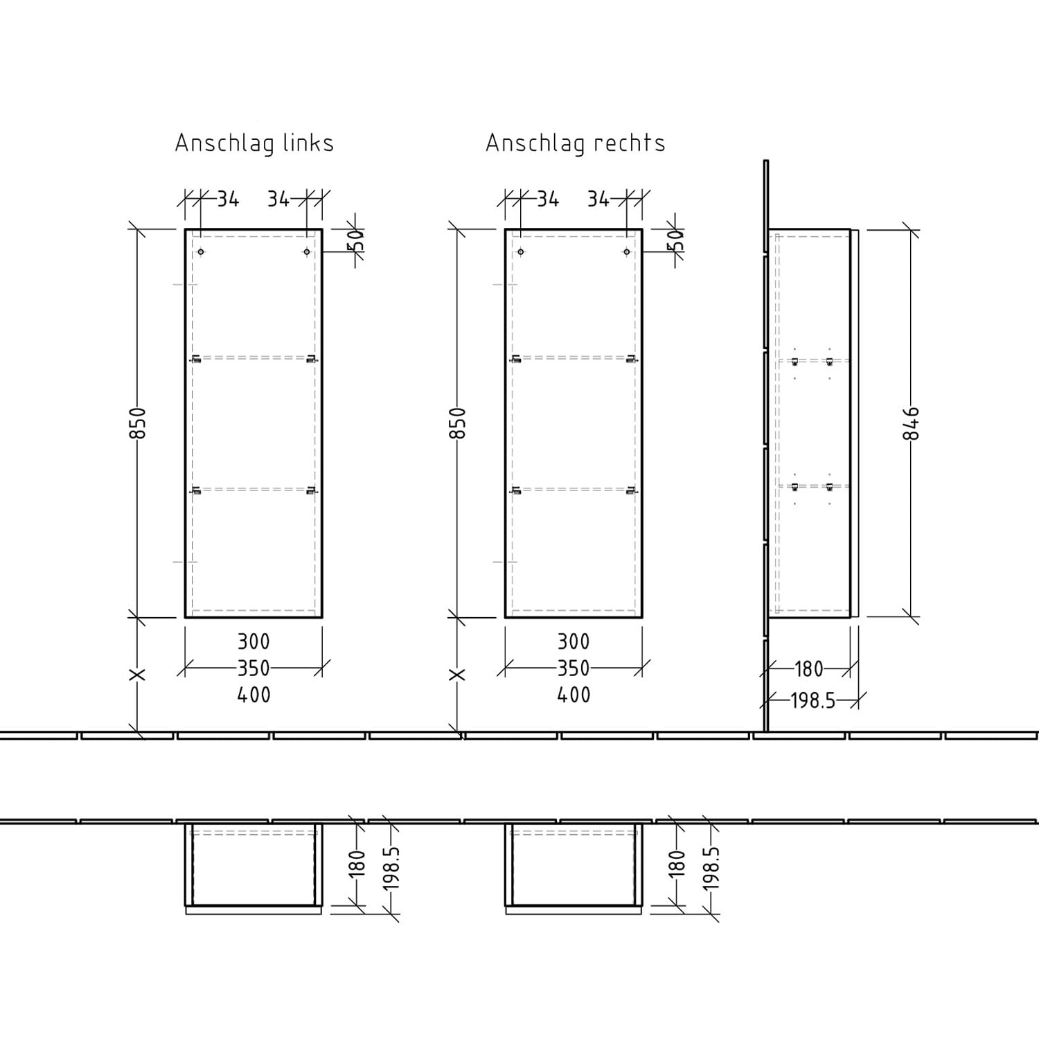 Sanipa 3way Hochschrank 30 cm, 1 offenes Fach, 2 Türen mit Türanschlag links