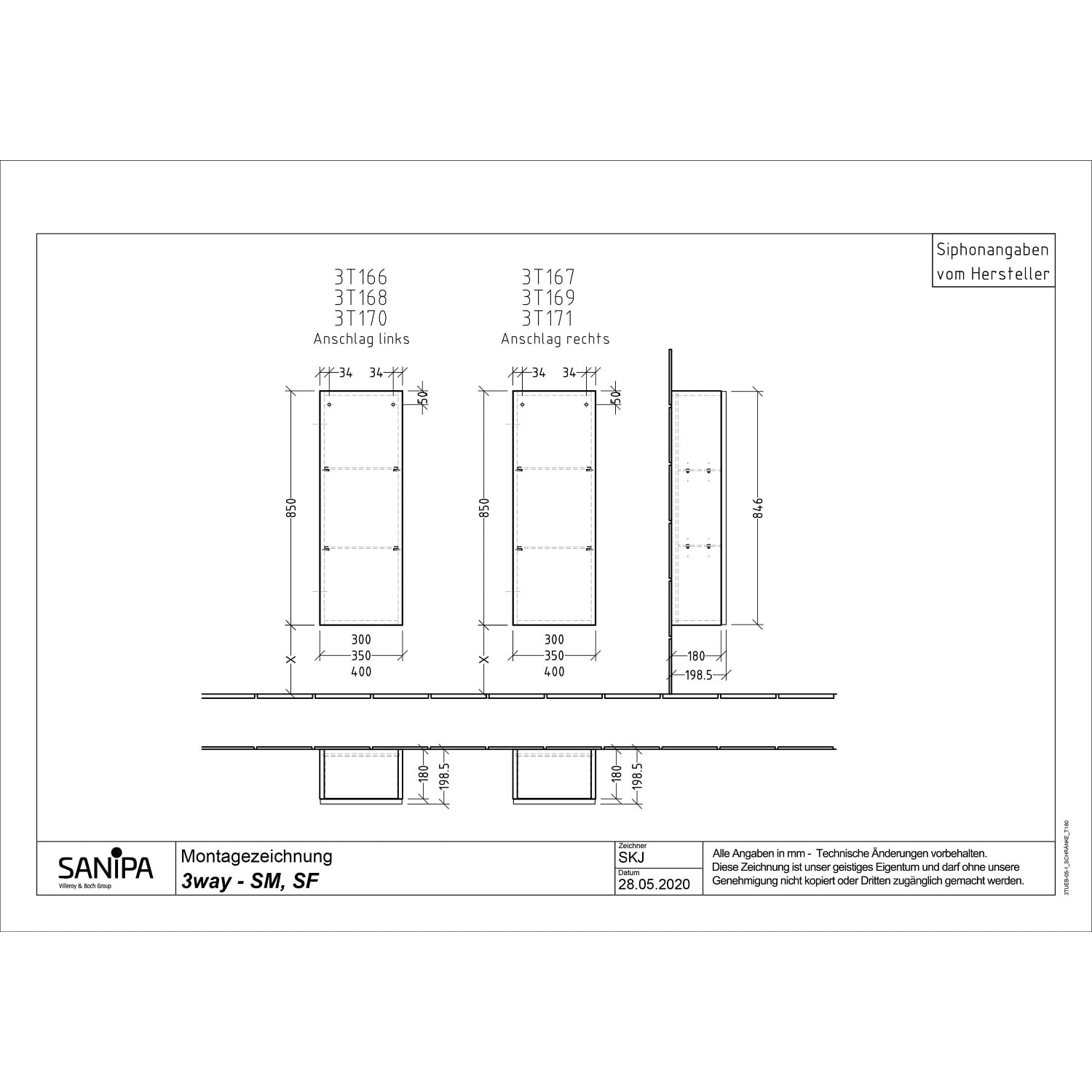 Sanipa 3way Mittelschrank 30 cm, 1 Tür, Anschlag rechts, Push to open